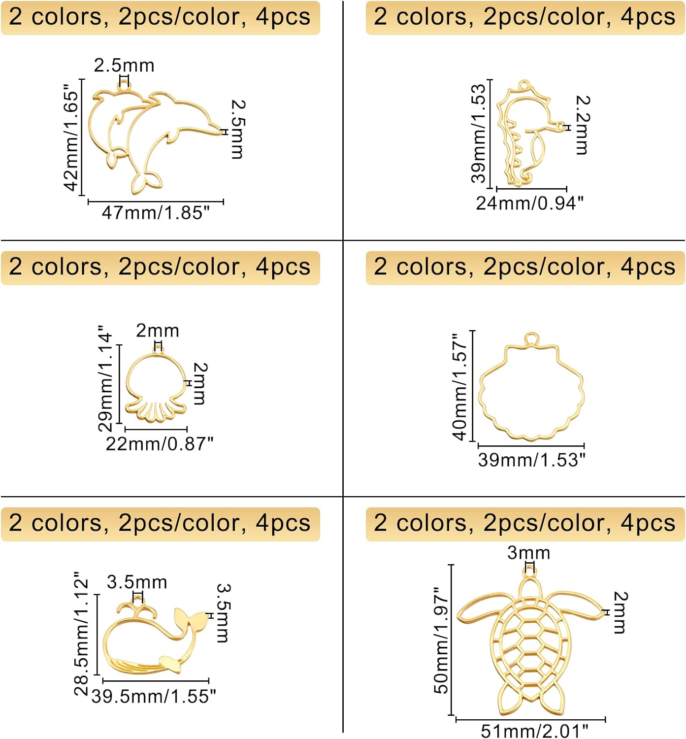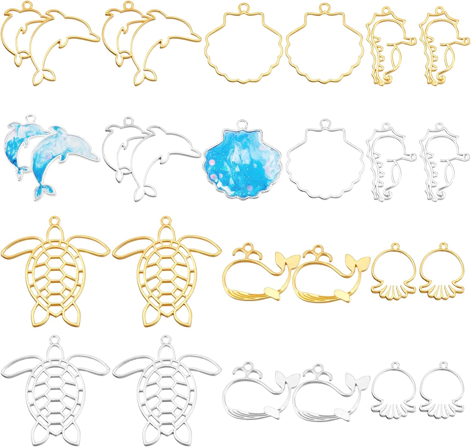 24Pcs 12 Style Alloy Open Back Bezel Pendants, for DIY UV Resin, Epoxy Resin, Pressed Flower Jewelry, Mixed Shapes, Golden & Silver, 2pcs/style