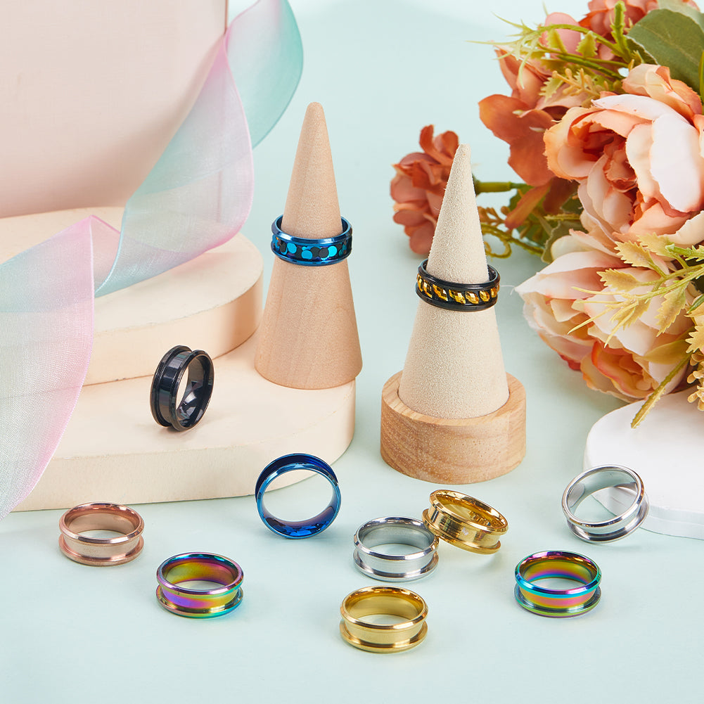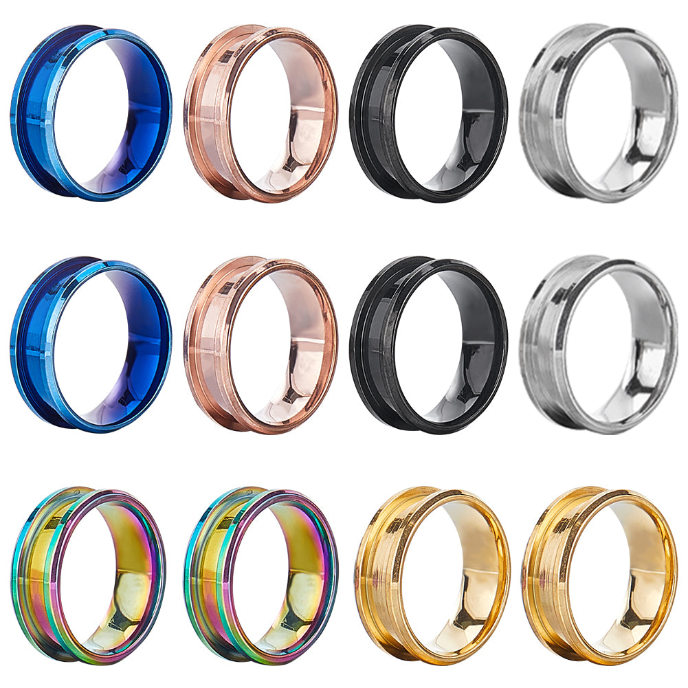 304 Stainless Steel Grooved Finger Ring Settings: about 18.1mm inner diameter, 8mm wide, groove: 4mm, 6 colors, 2pcs/color, 12pcs;