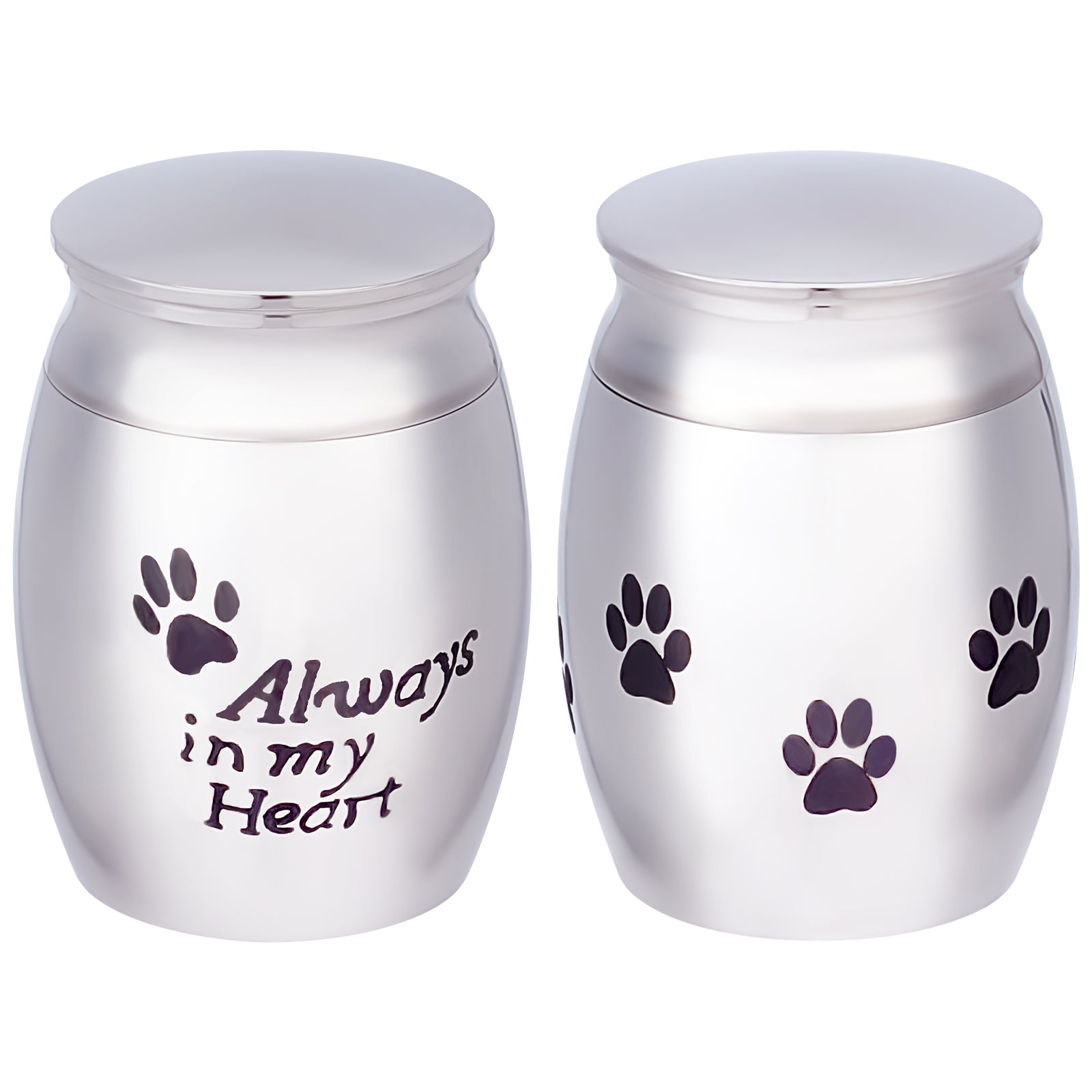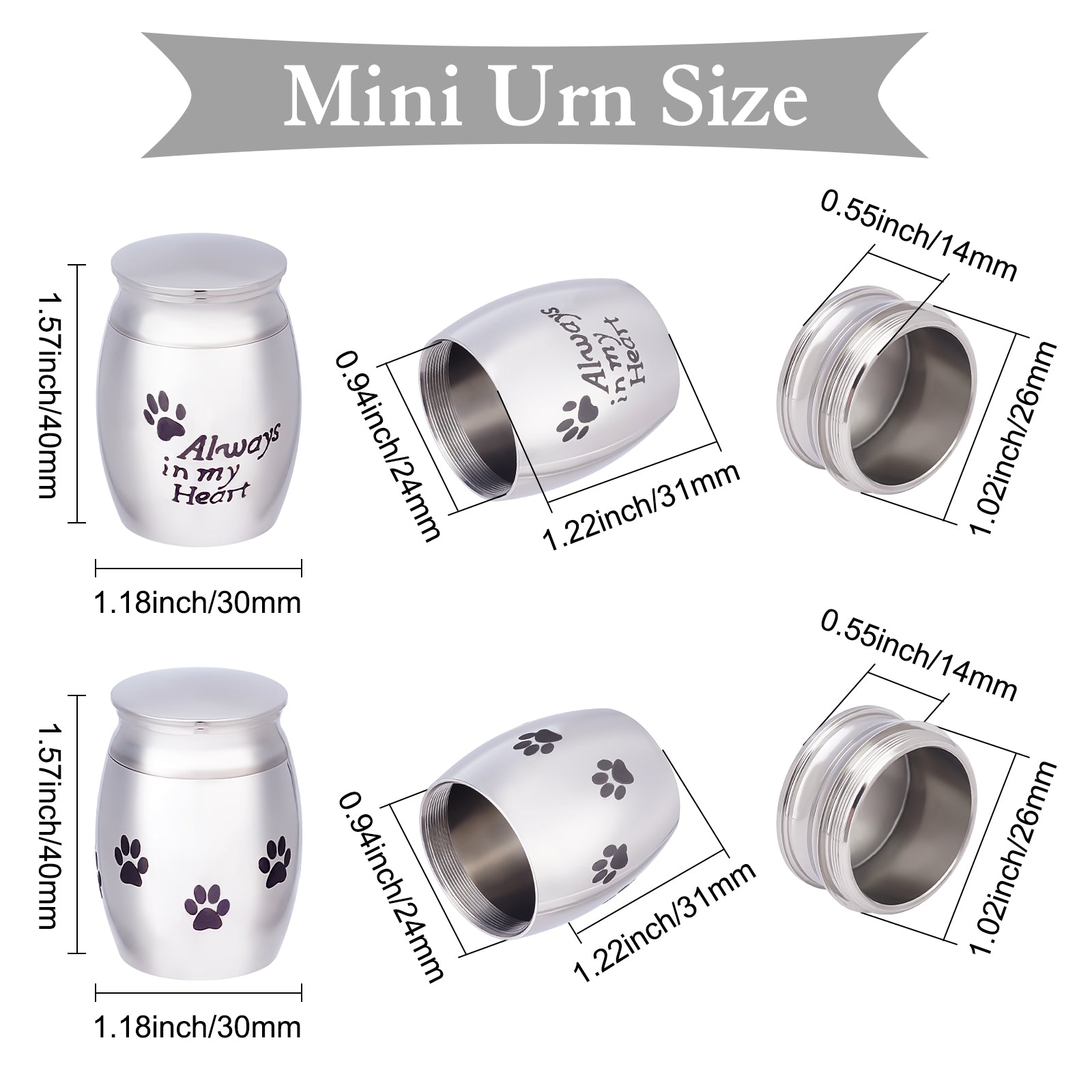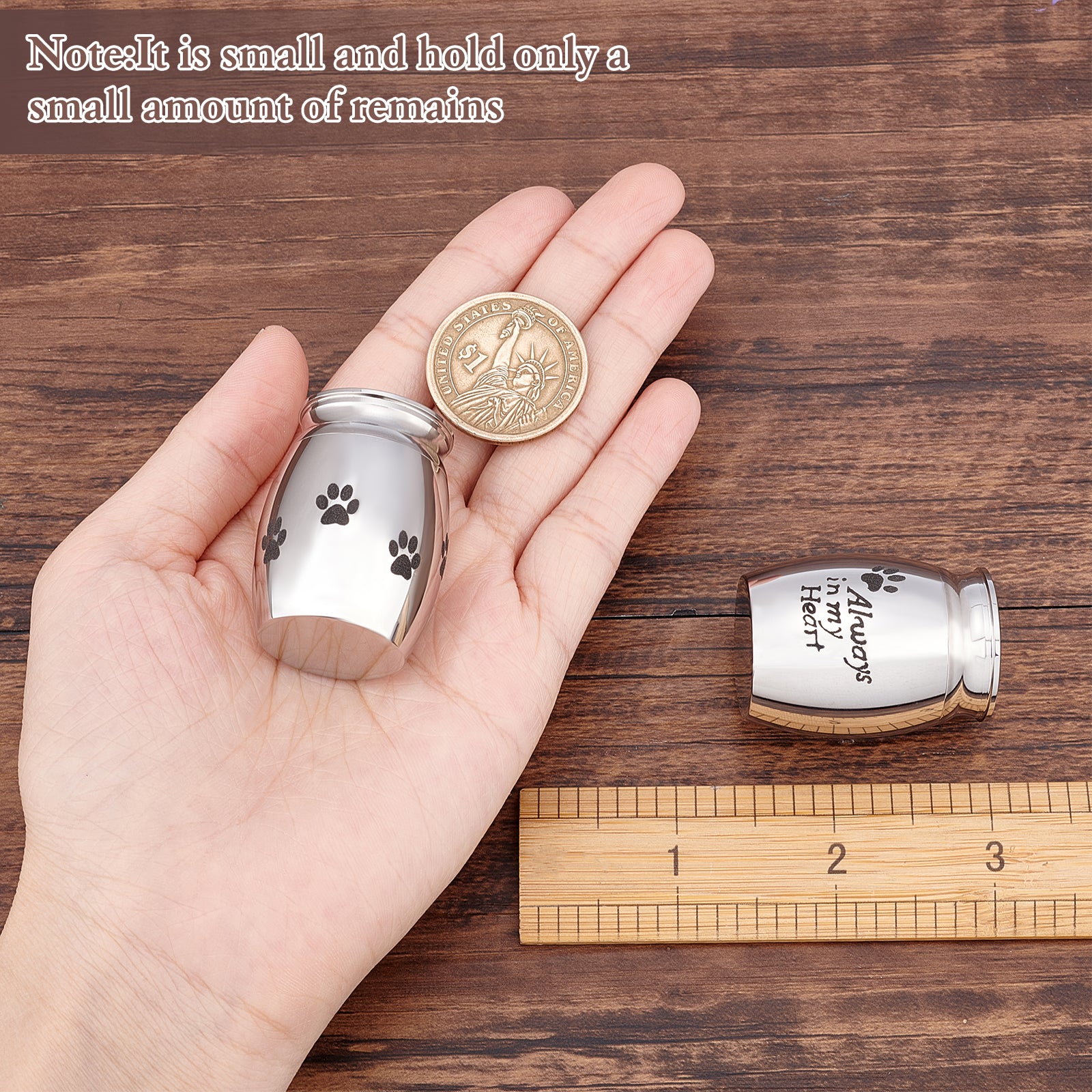 2Pcs 2 Style 316 Stainless Steel Pet Cinerary Casket, Column, with Cover, Paw Print, 40x30mm
