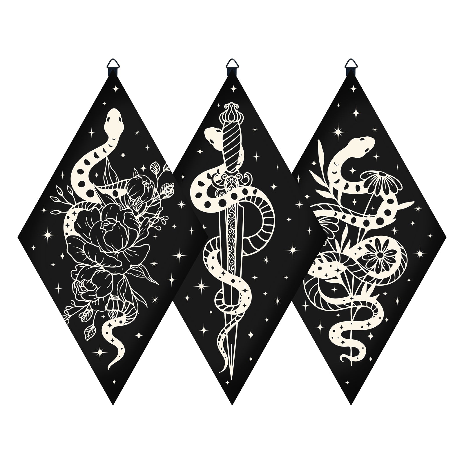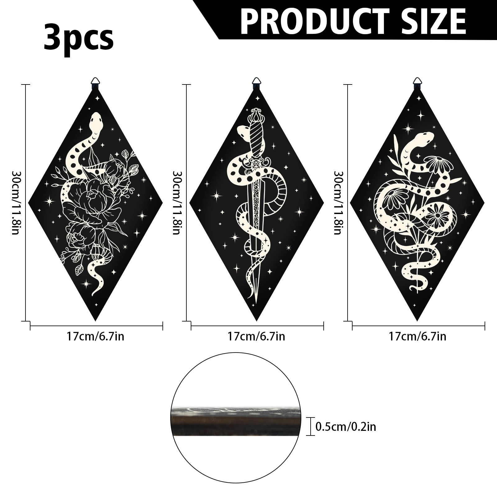 Custom Plywood Pendulum Board, Wall Hanging Ornament, for Witchcraft Wiccan Altar Supplies, Rhombus with Tarot Theme Patterns, Black, 300x170x6mm, 3 styles, 1pc/style, 3pcs/set
