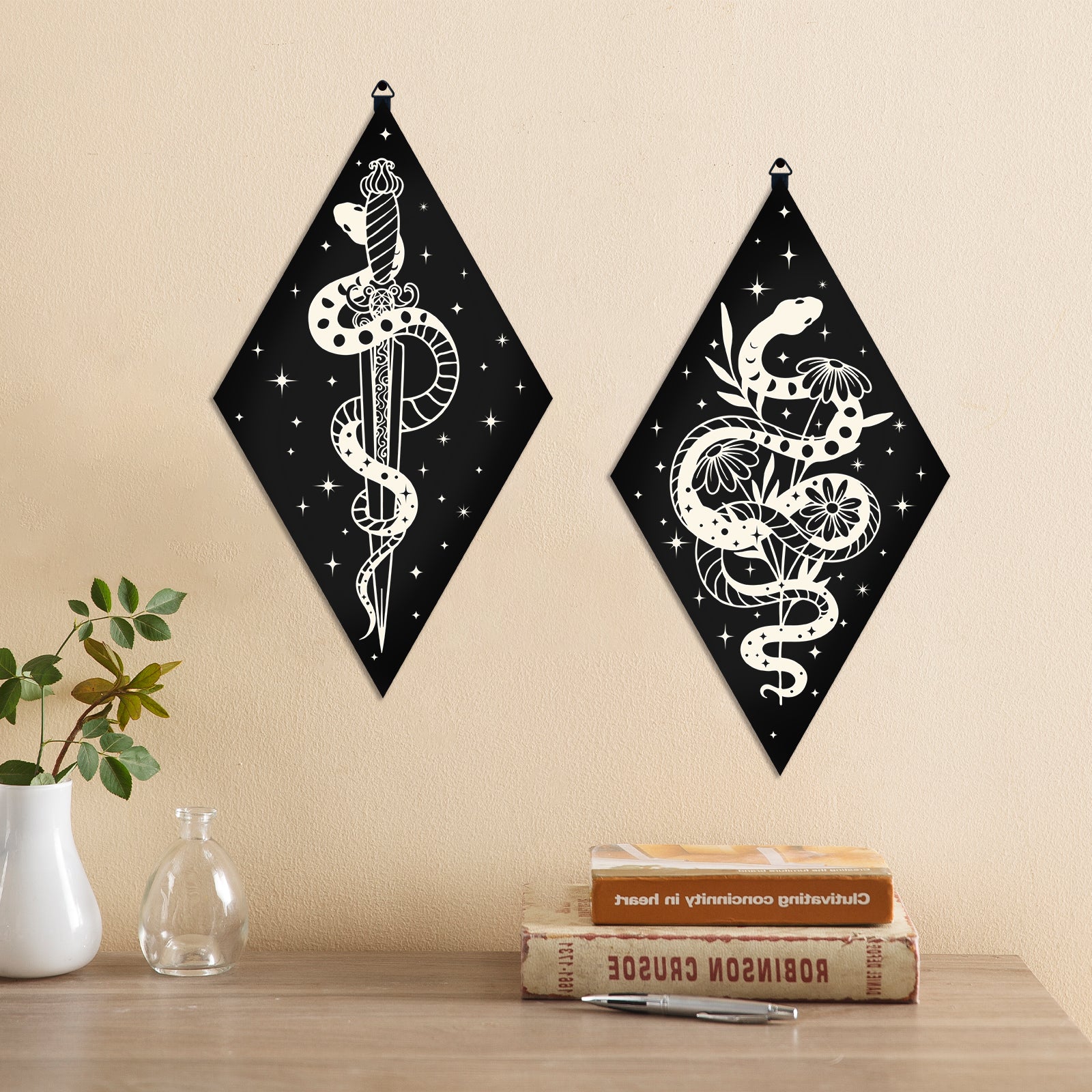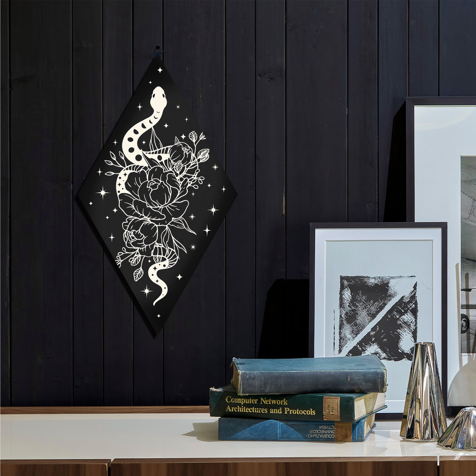 Custom Plywood Pendulum Board, Wall Hanging Ornament, for Witchcraft Wiccan Altar Supplies, Rhombus with Tarot Theme Patterns, Black