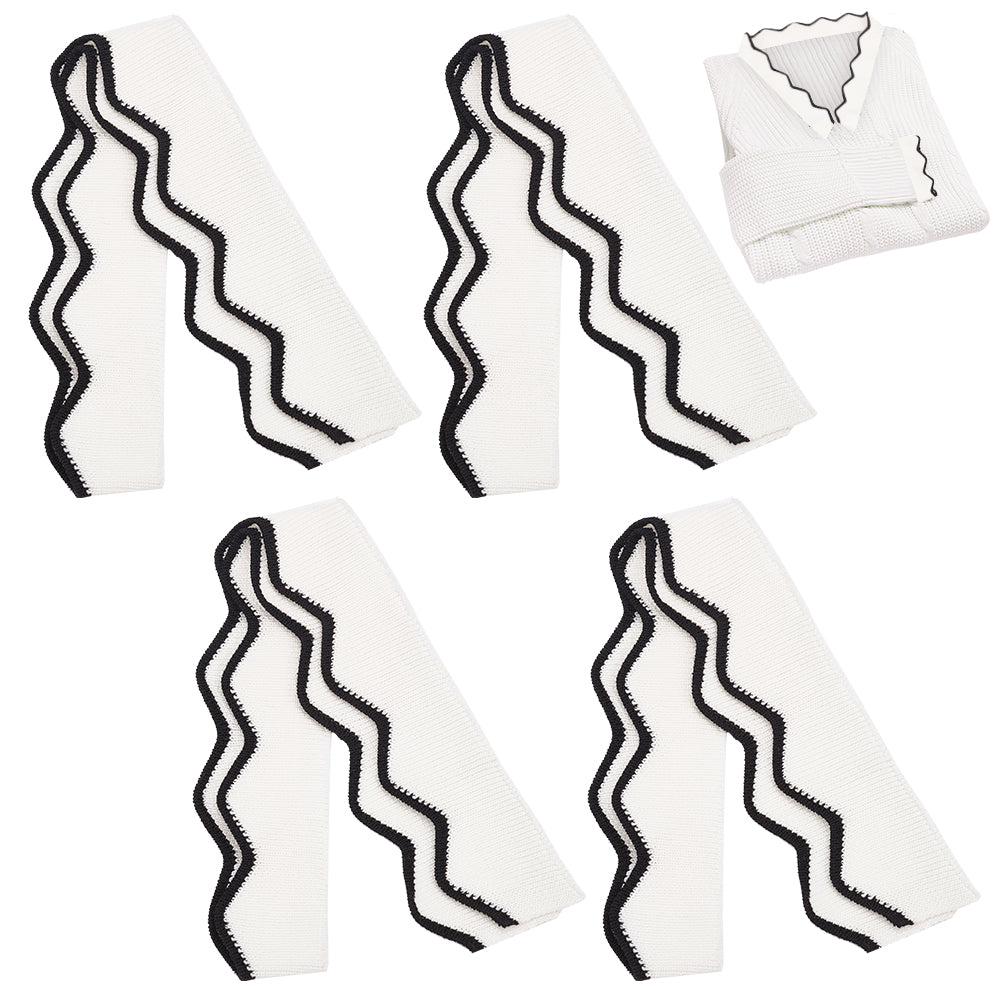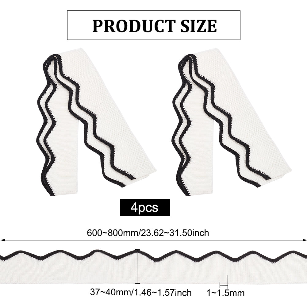 4Pcs 90% Ice Silk & 10% Elastic Fiber Ribbing Fabric for Cuffs, Waistbands Neckline Collar Trim, Scalloped Edge Jacquard Knitted Hem, Quilting Cloth, White, 600~800x37~40x1~1.5mm