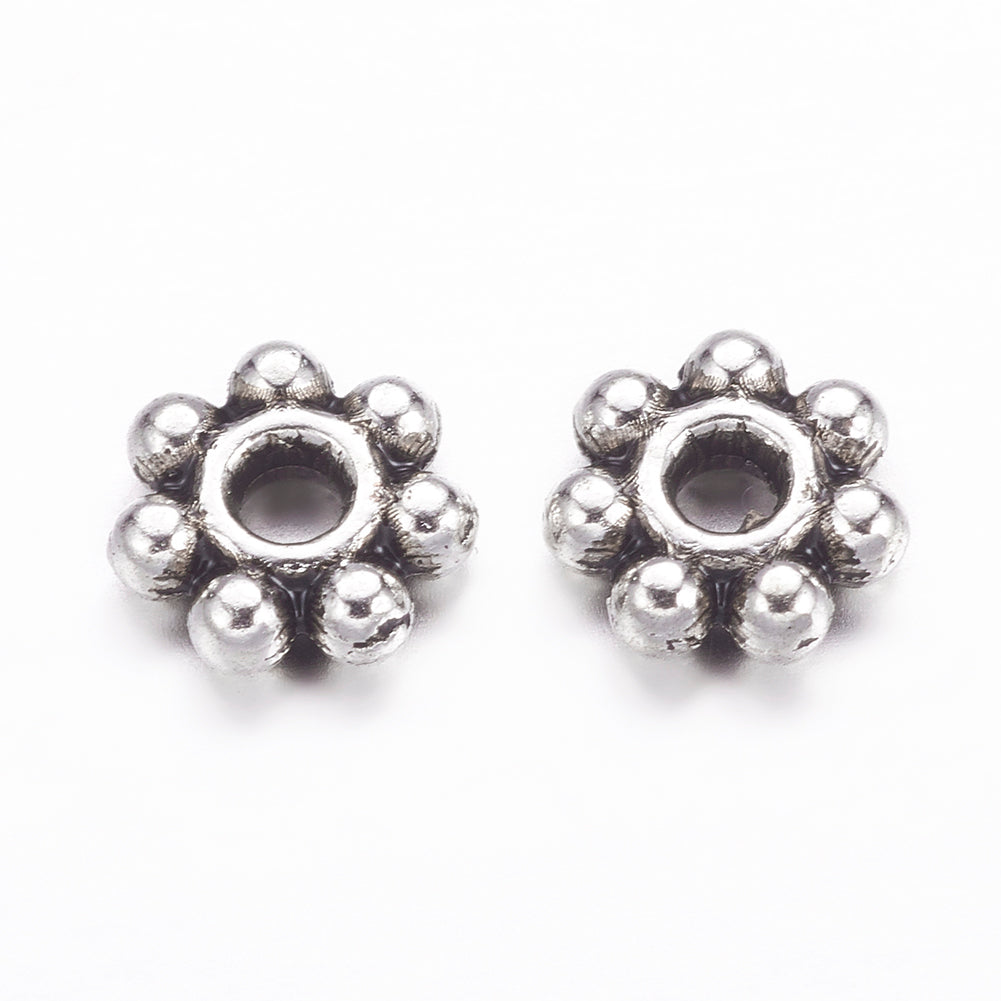 Tibetan Style Alloy Daisy Spacer Beads, Flower, Lead Free & Cadmium Free, Antique Silver, 4.5x1.5mm, Hole: 1mm, about 1000pcs/100g