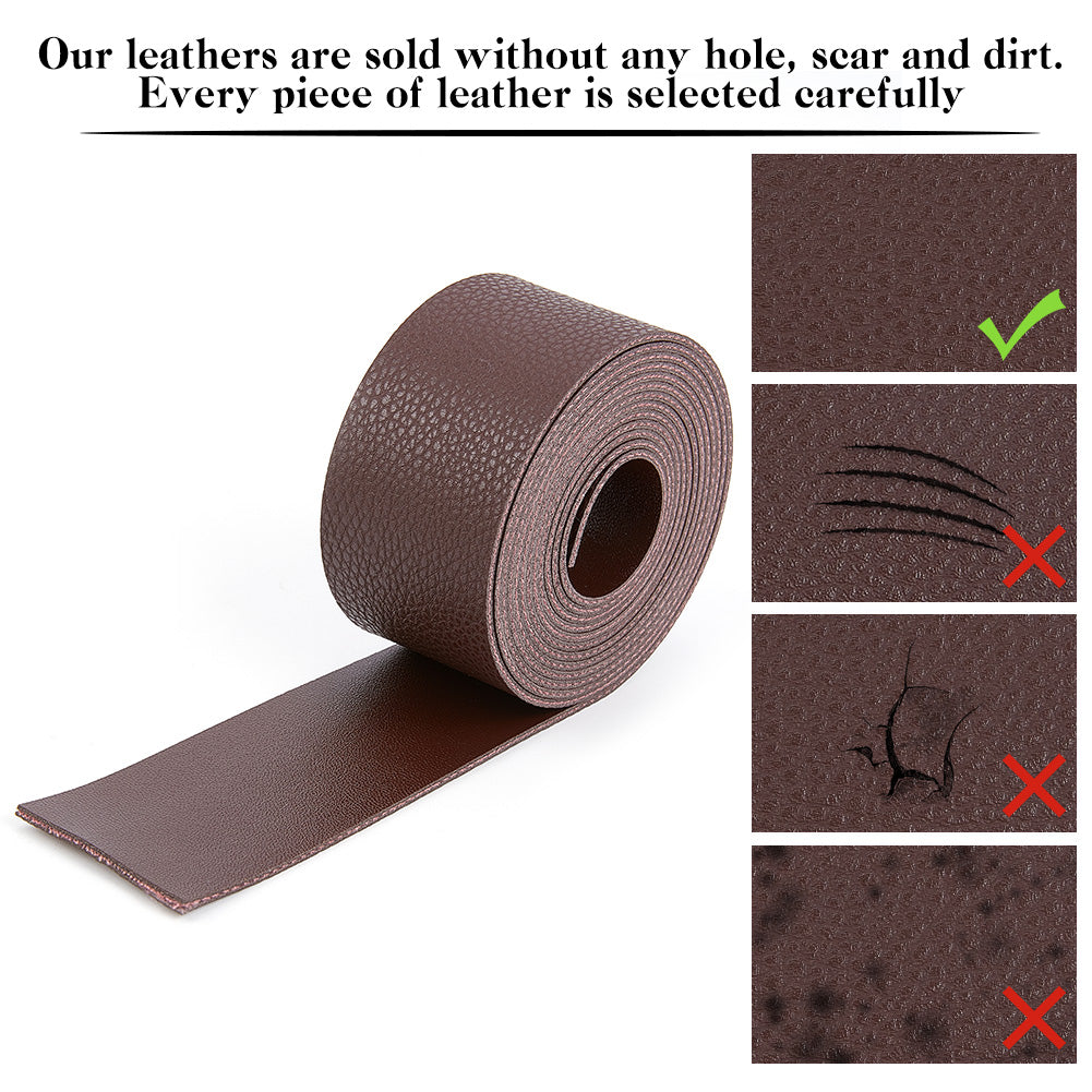 2M Flat Single Face Lychee Pattern Imitation Leather Band, Coconut Brown