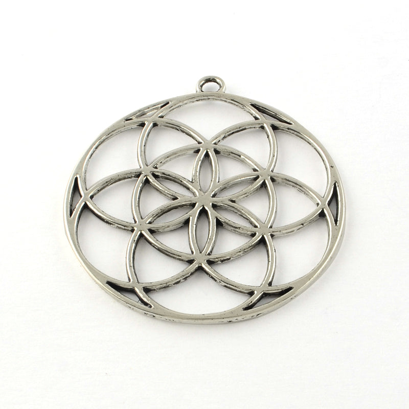 Tibetan Style Flower Alloy Pendants, Seed of Life/Sacred Geometry, Cadmium Free & Nickel Free & Lead Free, Antique Silver, 48x44x1.5mm, Hole: 3mm, 10pc/Set