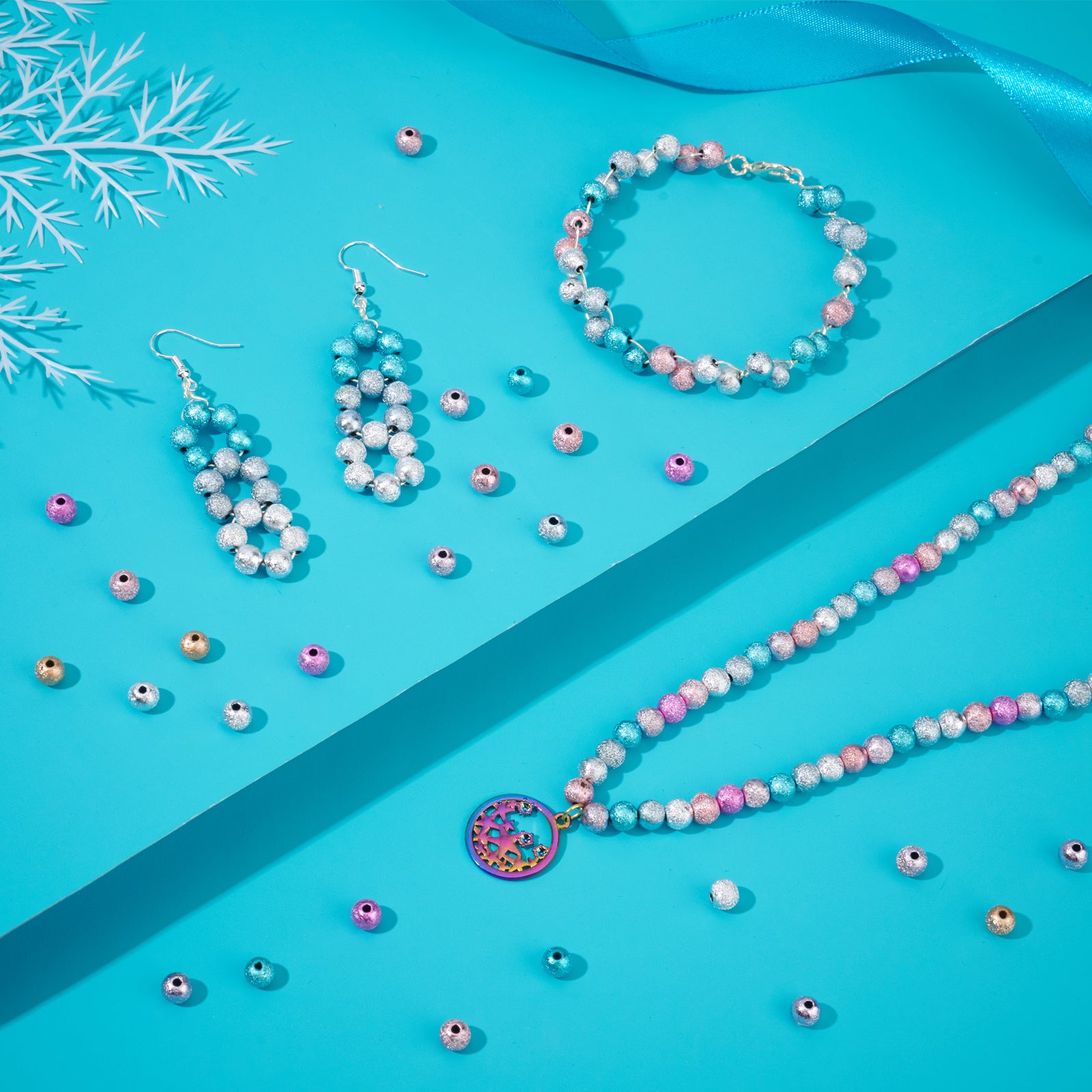 490Pcs 7 Style Spray Painted Acrylic Beads, Matte Style, Round, Mixed Color