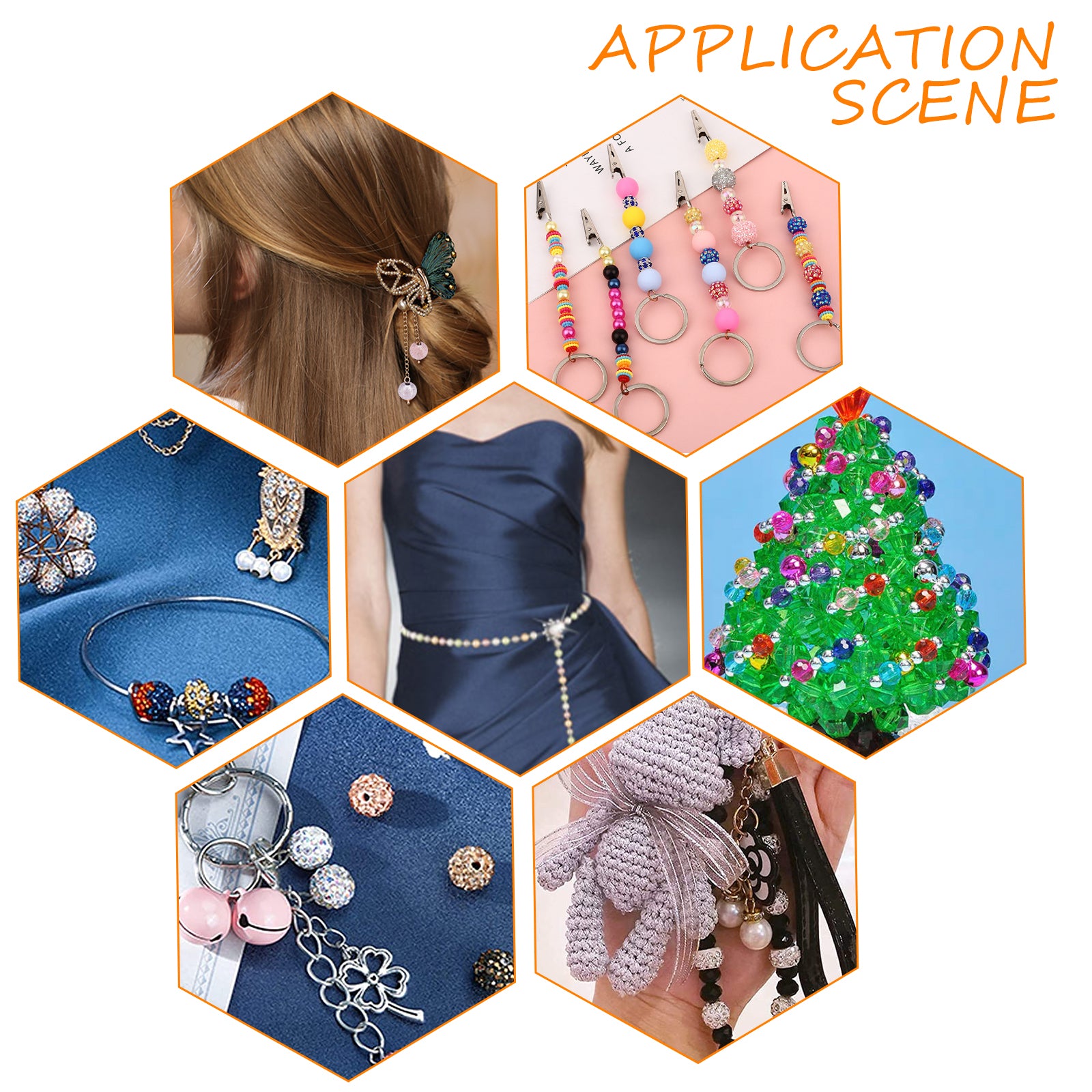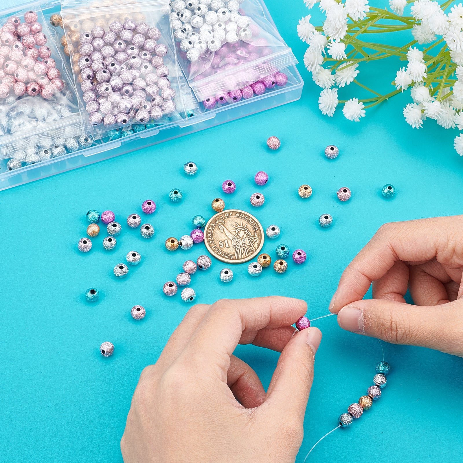 Round: about 0.24 inch(6mm) in diameter, hole:0.06 inch(hole:1.5mm), 70pcs/color, 7colors, 490pcs;