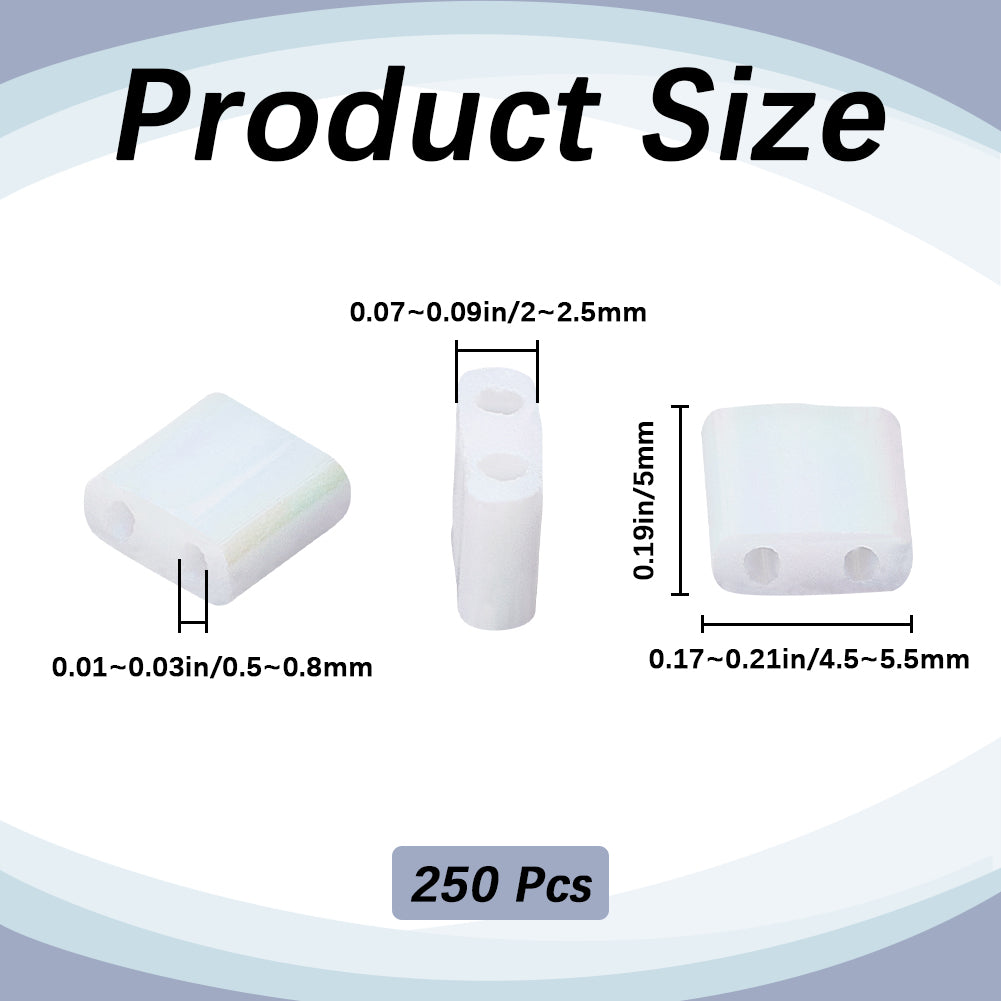 250Pcs 2-Hole Opaque Glass Seed Beads, AB Colours, Rectangle, White, 5x4.5~5.5x2~2.5mm, Hole: 0.5~0.8mm