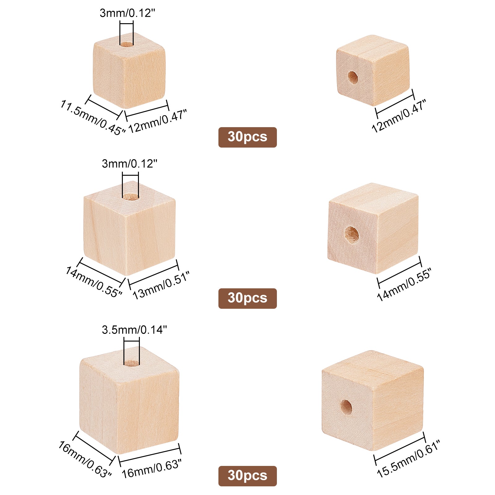 Wood Beads: about 0.63x0.63x0.61 inch(16x16x15.5mm), hole: 0.14 inch(3.5mm), 30pcs;