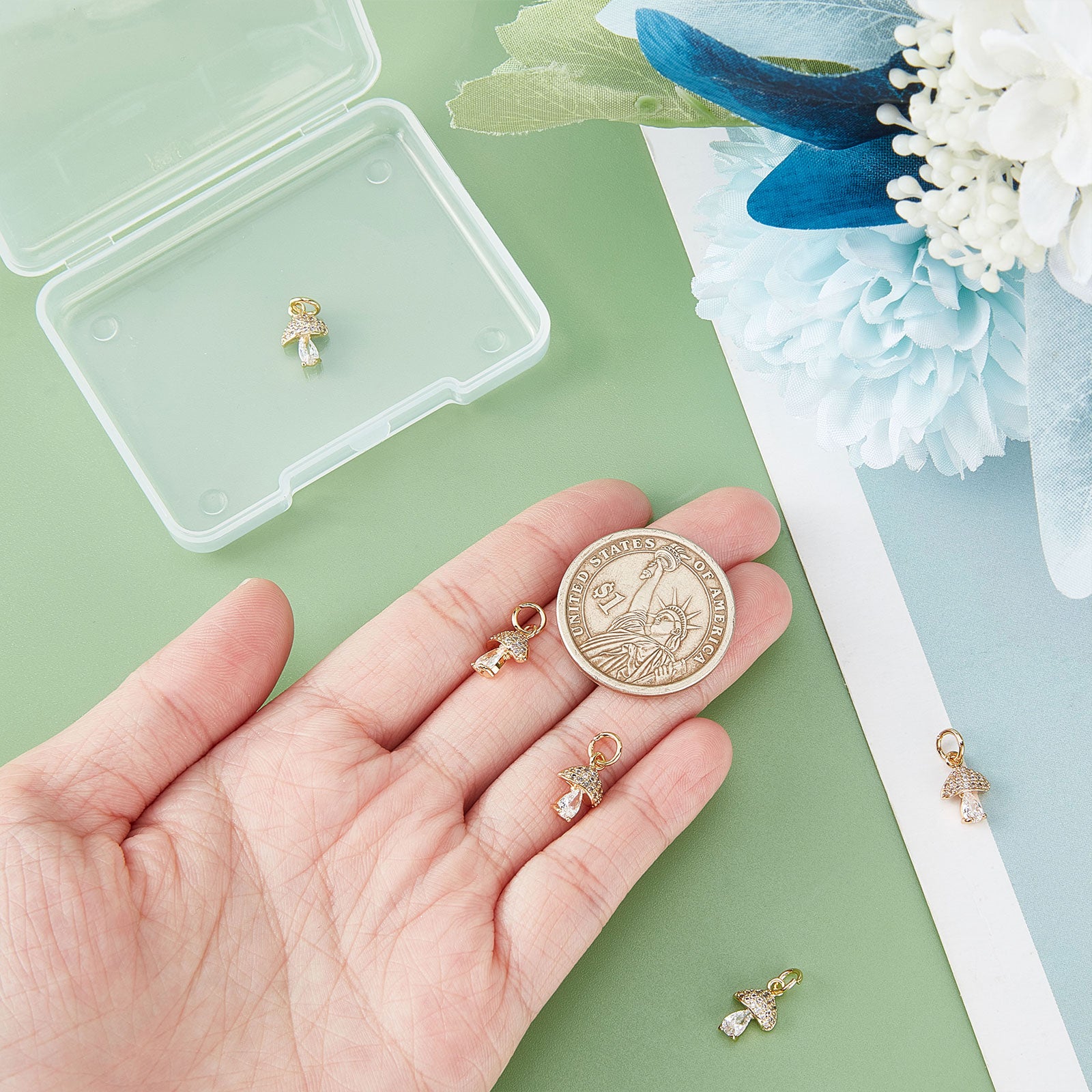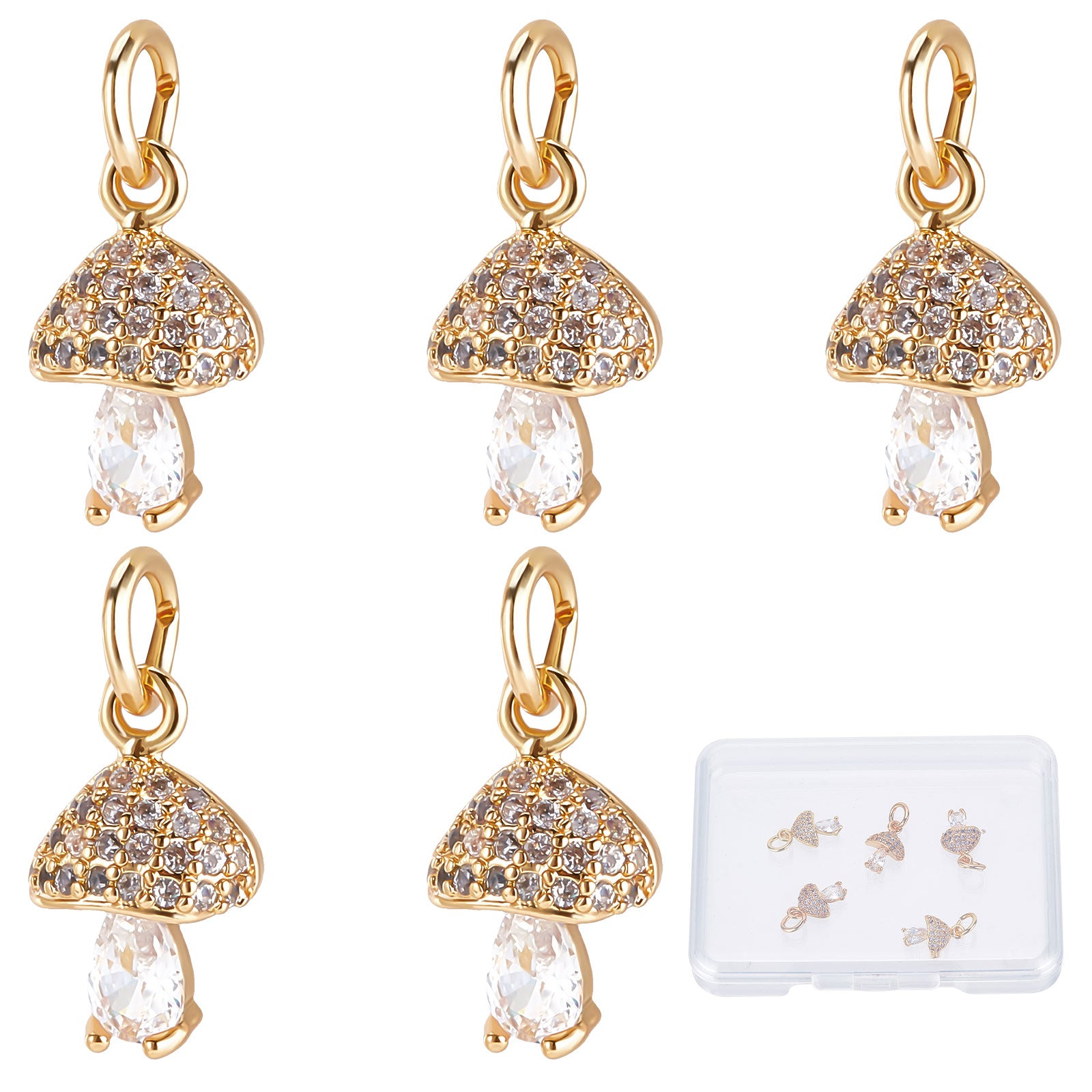 Brass Micro Pave Cubic Zirconia Charms, Mushroom, Real 18K Gold Plated, 11x7.5x4mm, Hole: 3mm, 8pcs/box