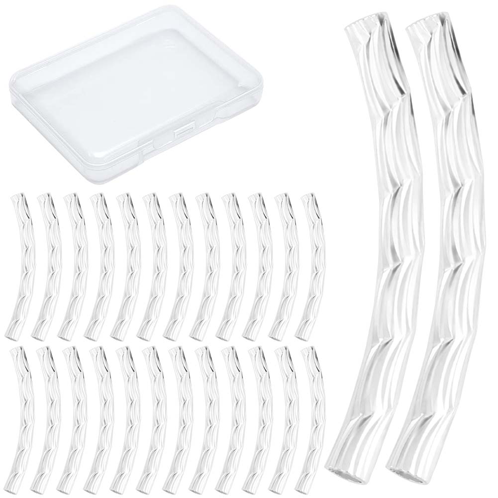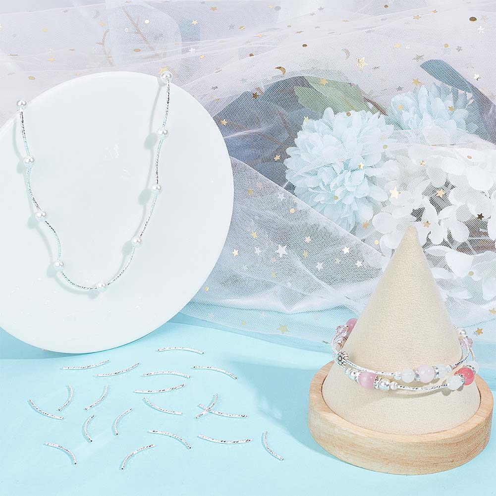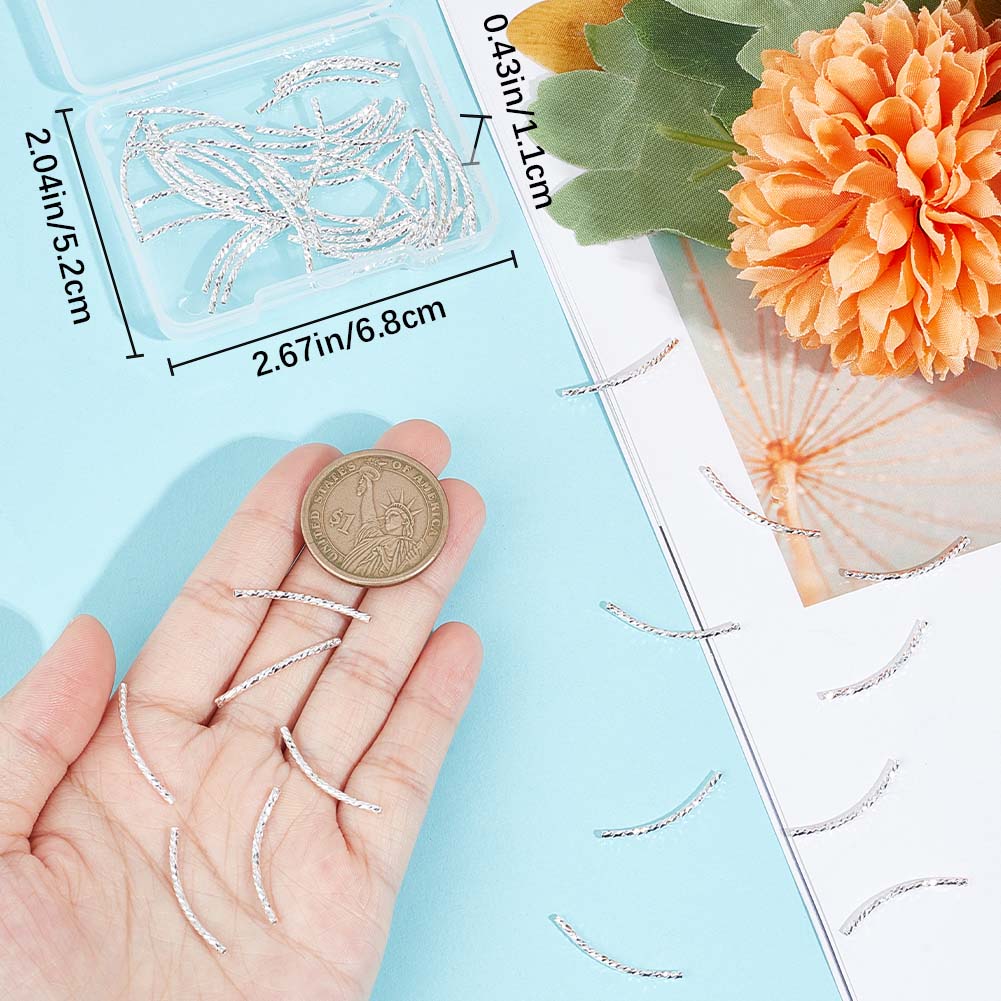 Brass Tube Beads, Long-Lasting Plated, Curved Beads, Textured Tube, 925 Sterling Silver Plated, 20x2mm, Hole: 1.2mm, 40pcs/box