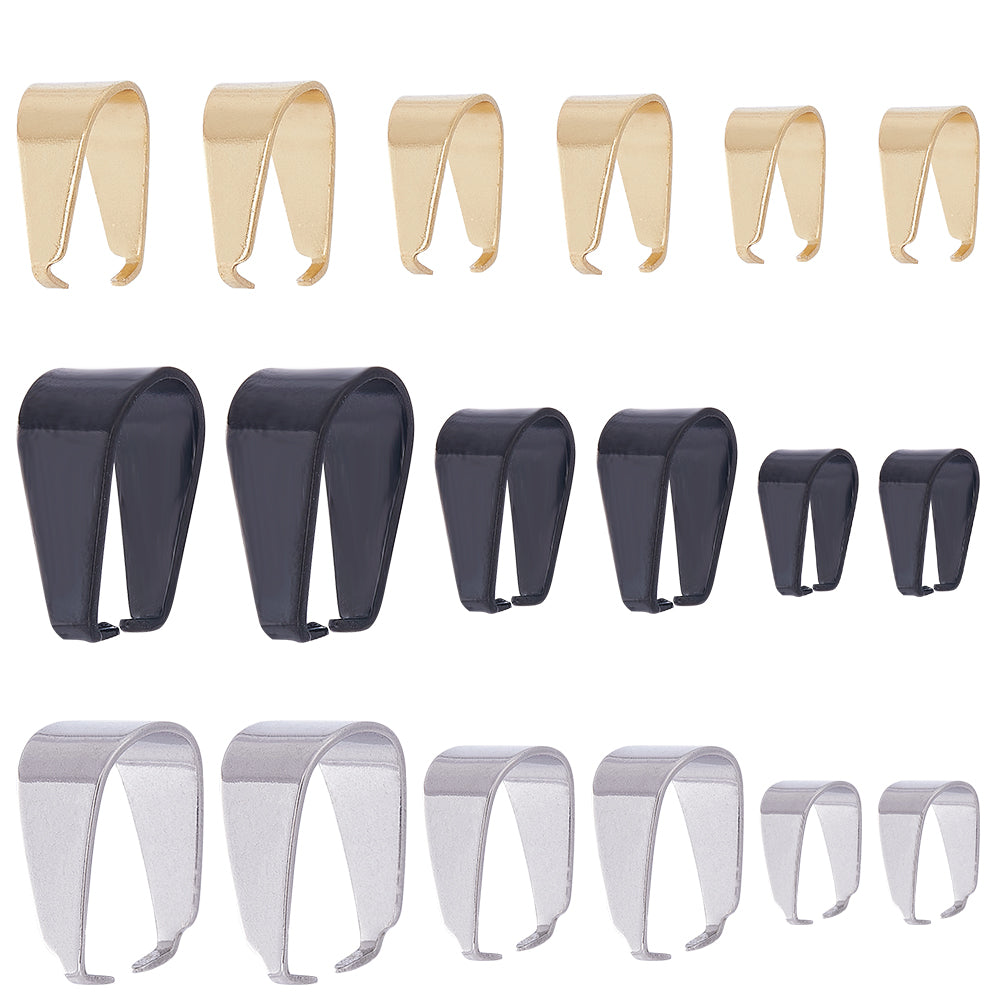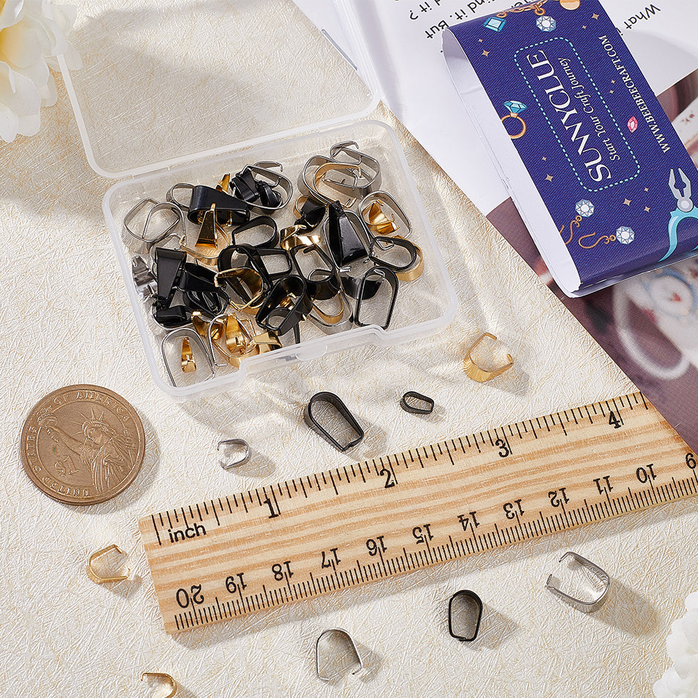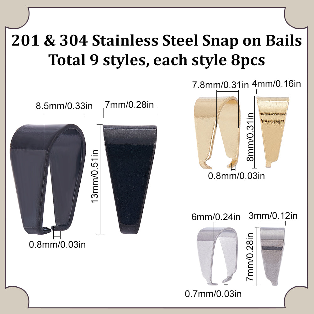 72Pcs 9 Styles 201 & 304 Stainless Steel Snap on Bails, Mixed Color, 6.5~13x6~8.5x3~7mm, 8pcs/style