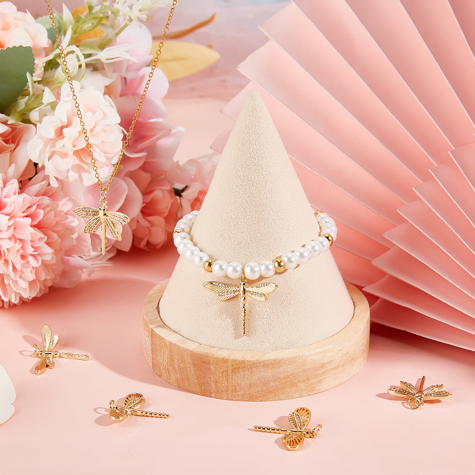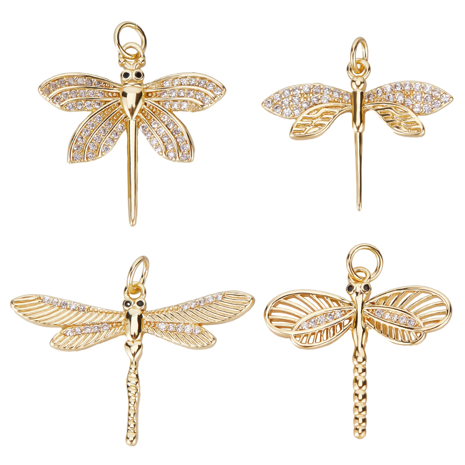 8Pcs 4 Styles Brass Micro Pave Cubic Zirconia Pendants, with Jump Ring, Long-Lasting Plated, Dragonfly, Real 18K Gold Plated