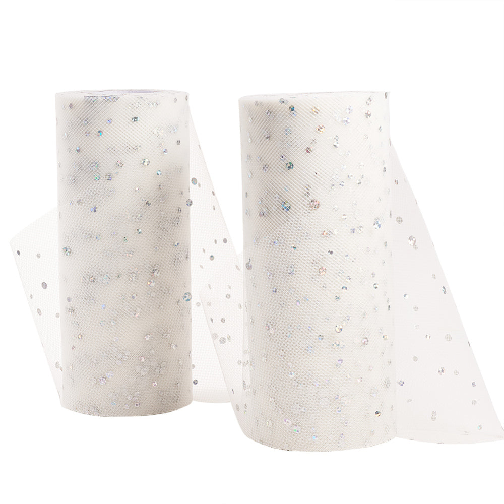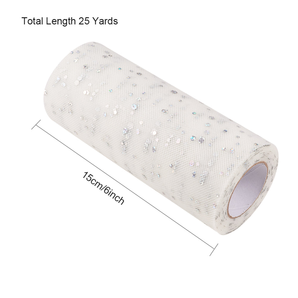 Glitter Sequin Deco Mesh Ribbons, Tulle Fabric, Tulle Roll Spool Fabric For Skirt Making, WhiteSmoke