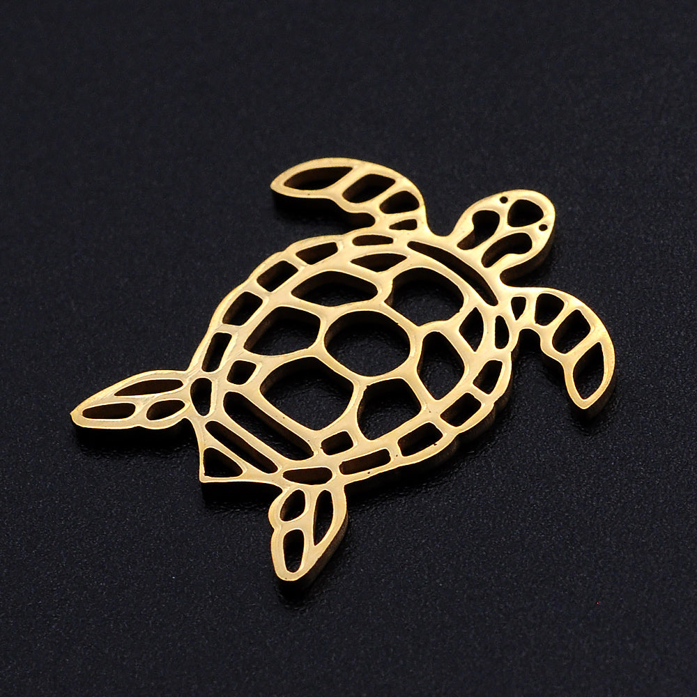 201 Stainless Steel Filigree Joiners Links, Laser Cut, Sea Turtle, Golden