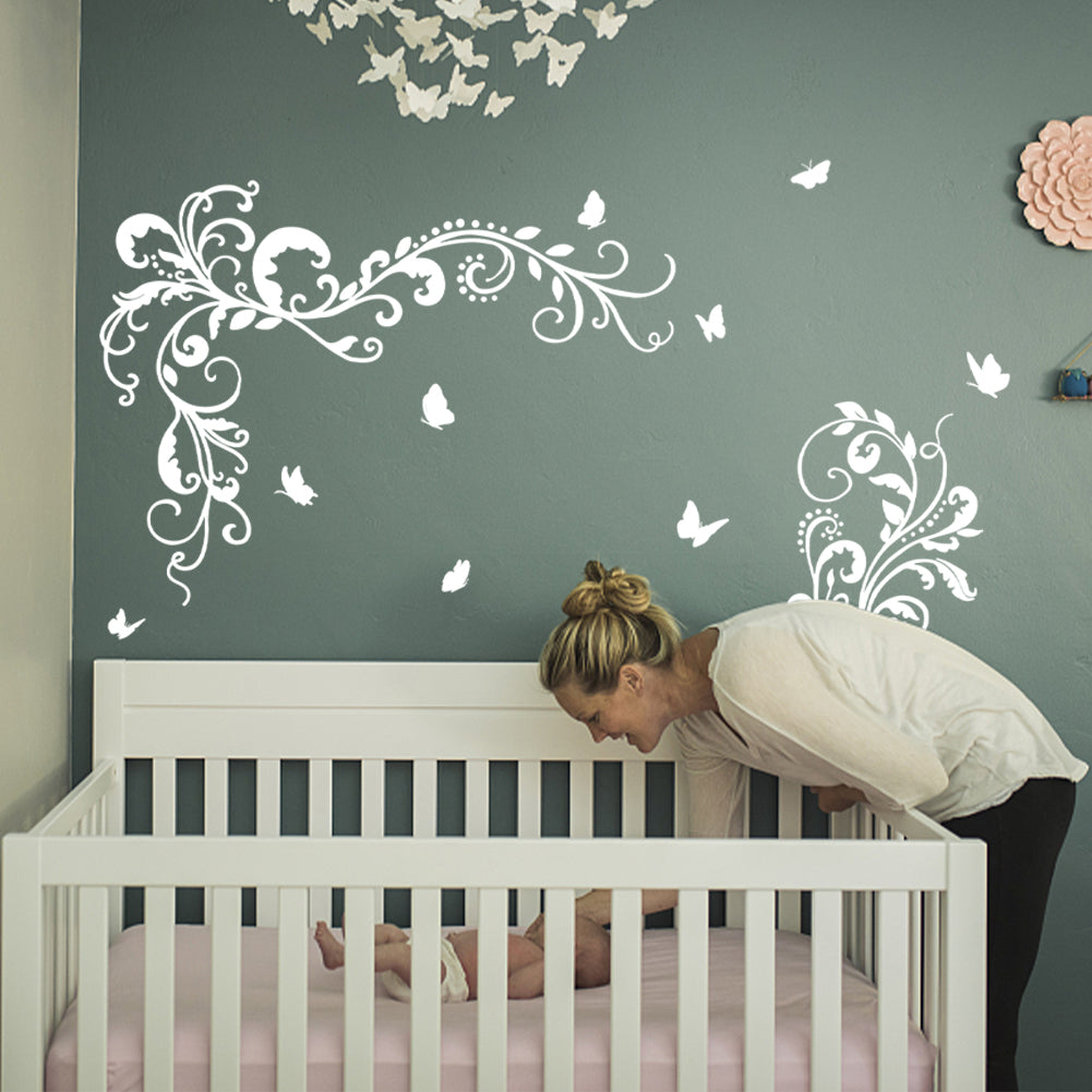 PVC Wall Stickers, for Home Living Room Bedroom Wall Decoration, Flower Pattern