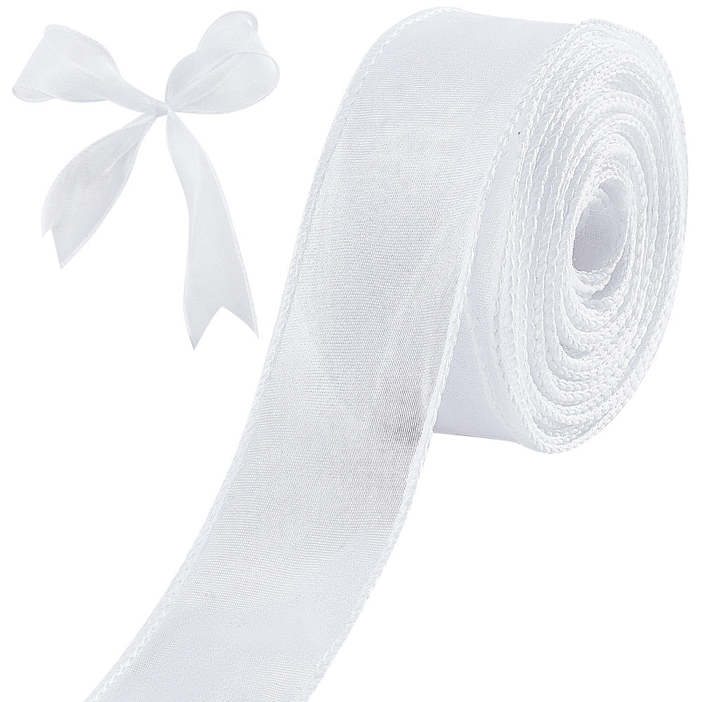 Polyester Ribbon, for Flower Gift Packing or Costume Decoration, White