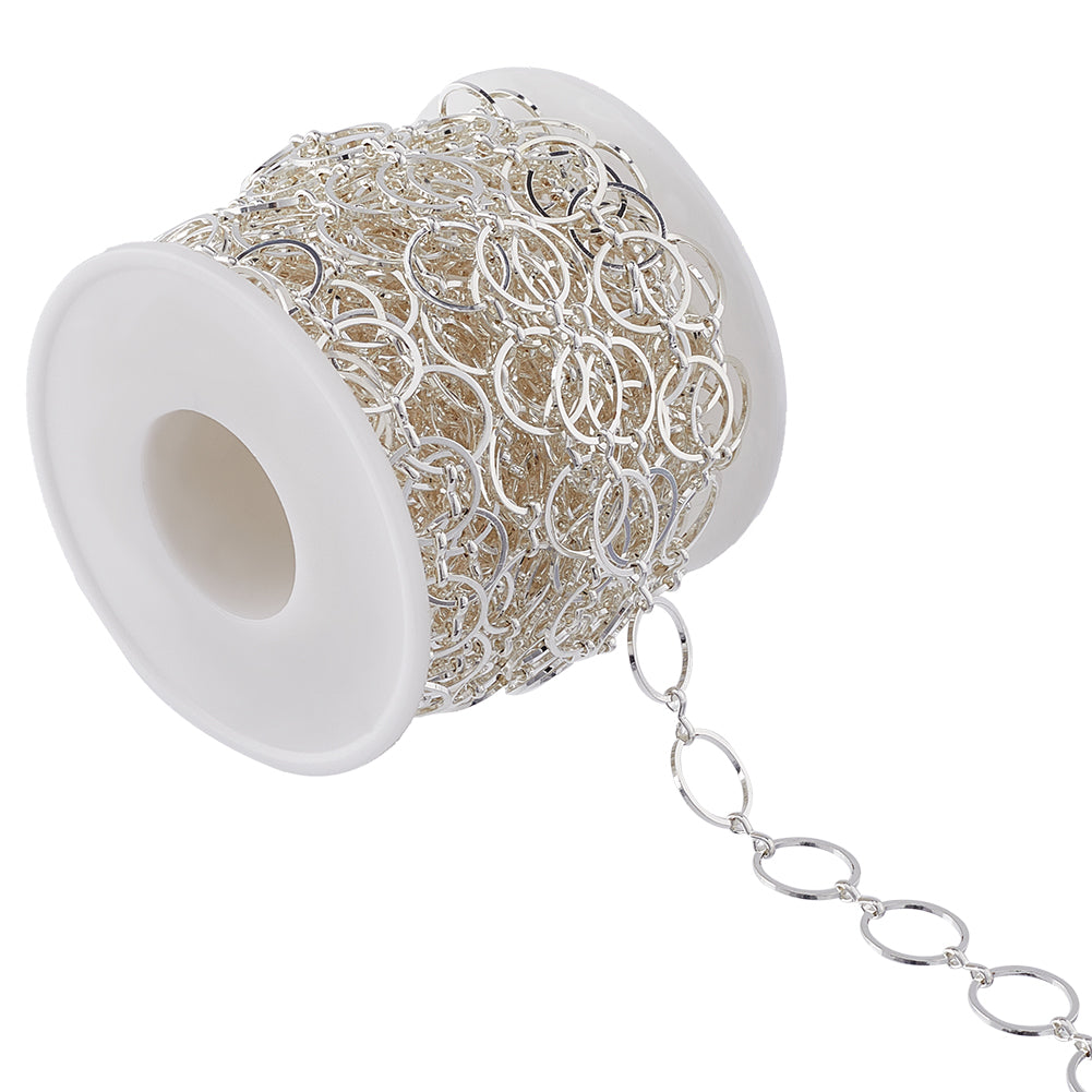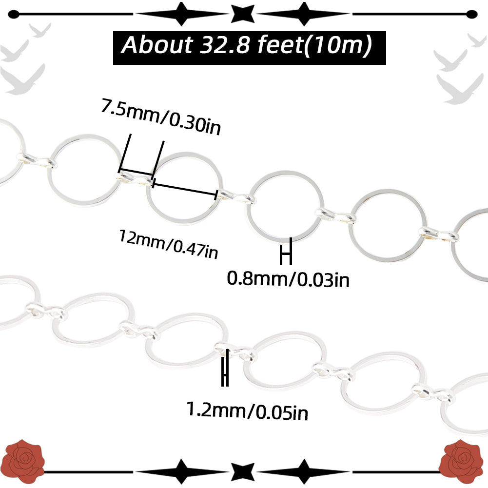 Brass Handmade Chains: Mother Link: 12mm in diameter, 0.8mm thick, Son Link: 1.2mm wide, 7.5mm long, 0.5mm thick, about 32.8 Feet(10m)/roll, 1roll.
