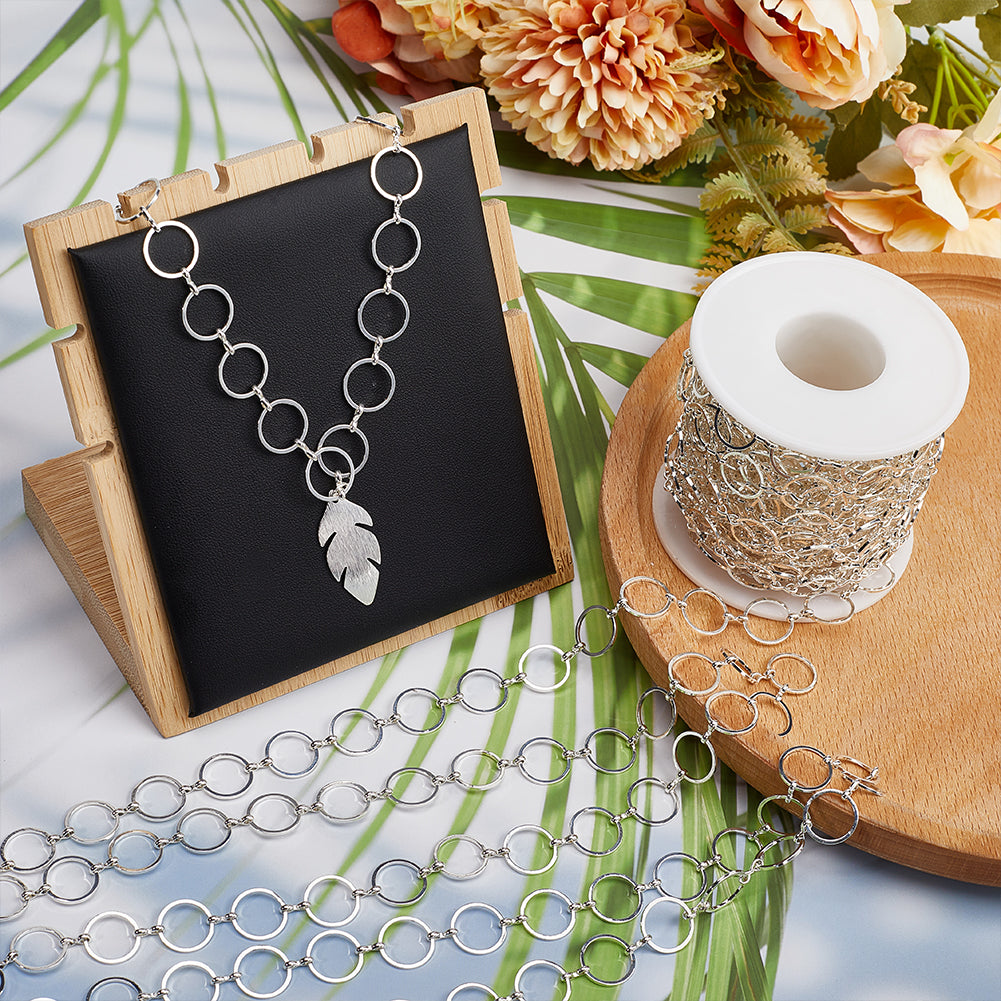 1 Roll Brass Handmade Mother-son Chains, Unwelded, with Spool, Silver