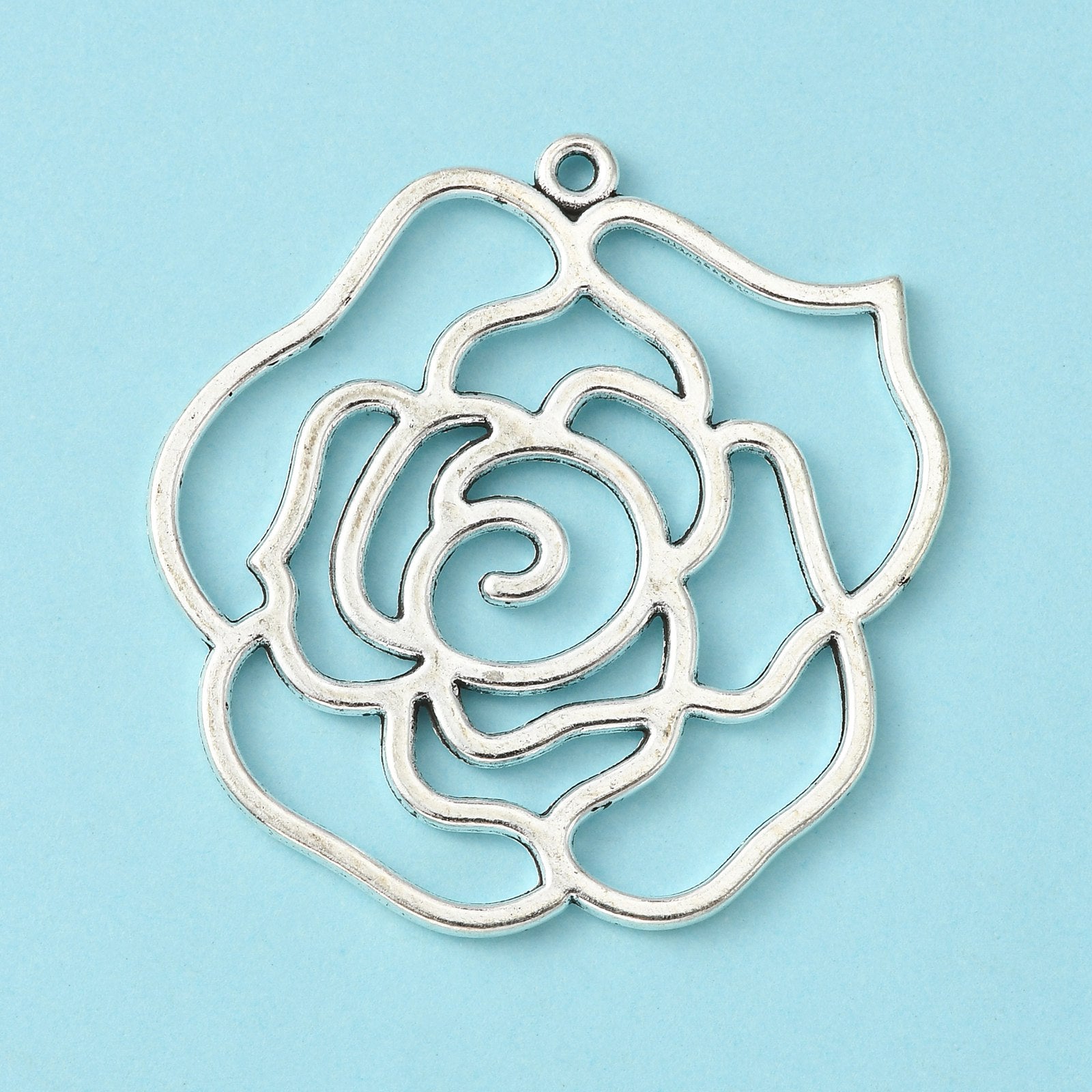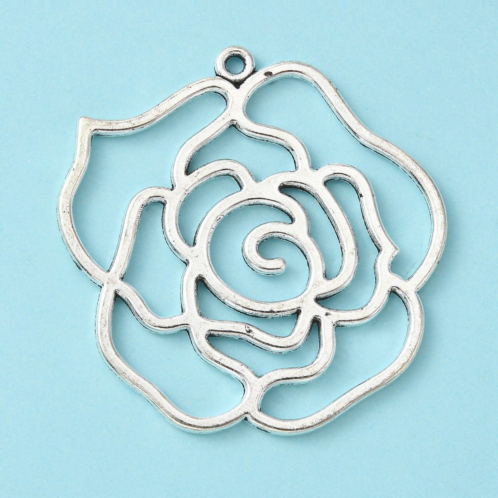 Tibetan Style Alloy Pendants, Rose, Antique Silver, Lead Free and Cadmium Free, 43x39x2mm, Hole: 2mm, 10pc/Set