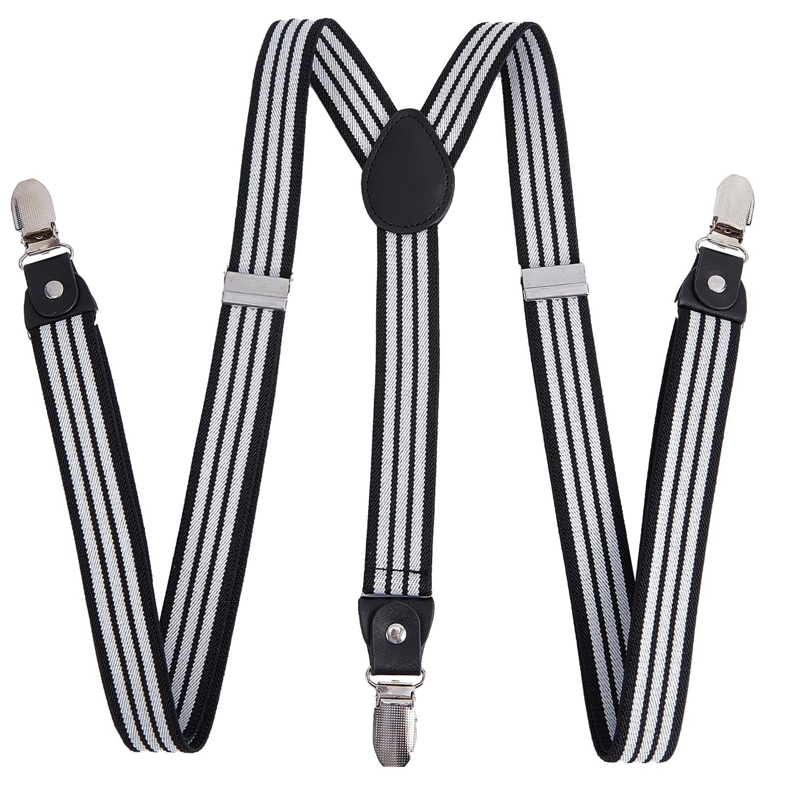 Polyester Elastic Men's Strength Suspenders, with Iron Clasps, Stripe Pattern, 75~116x24x2mm