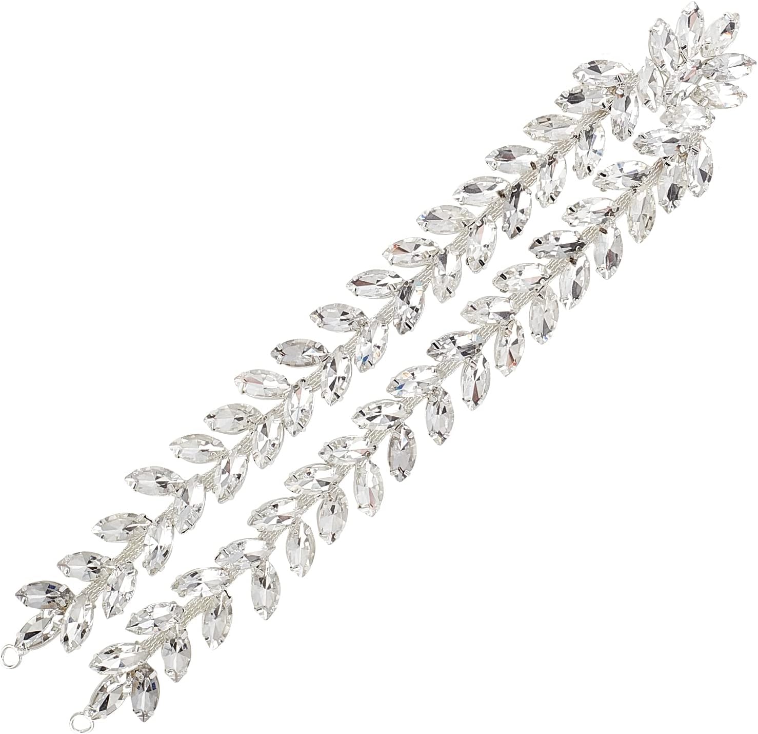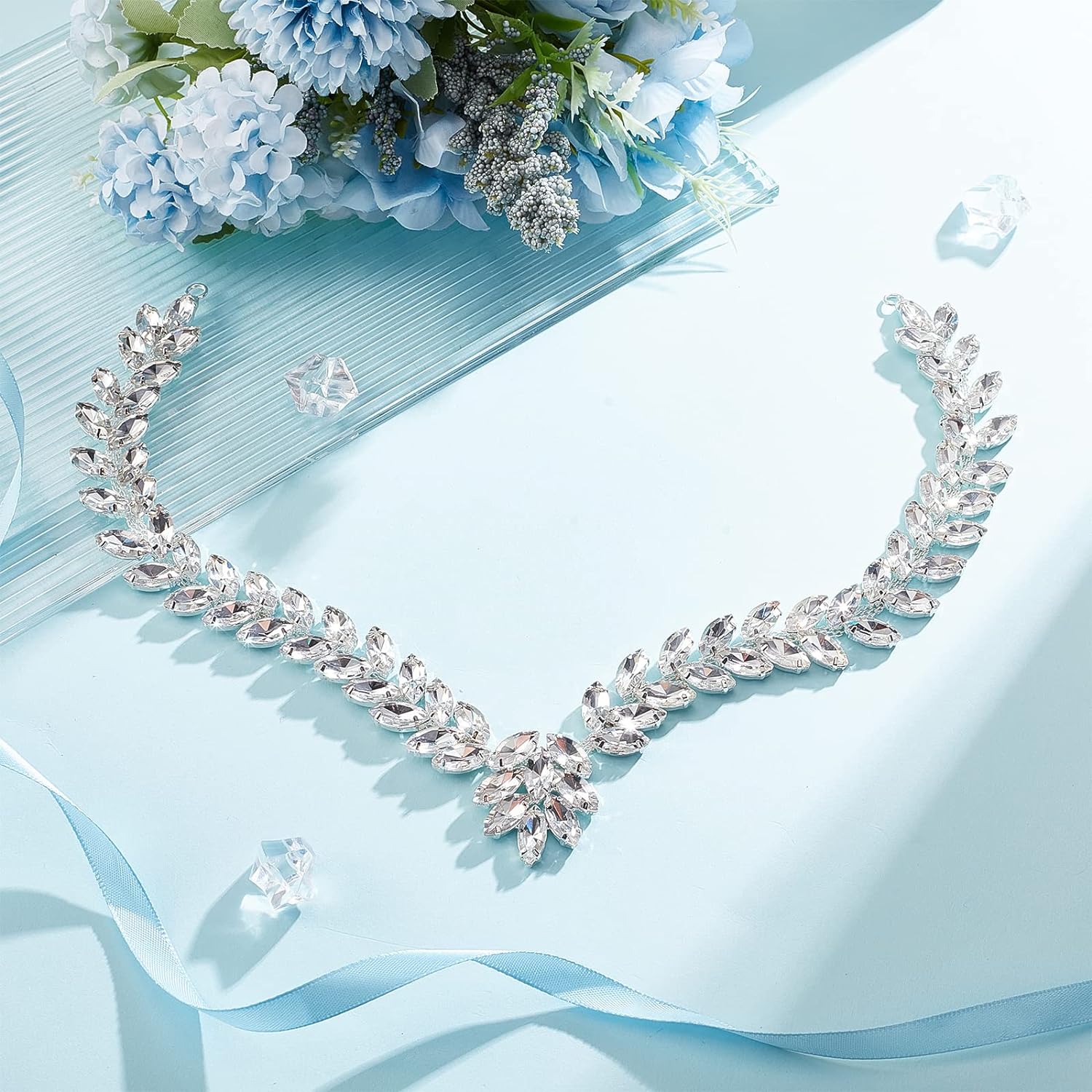 1Pc Shiny Flower Crystal Rhinestone Collar Trim, Flexible Sewing Crafts Bridal Costume Embellishment, Platinum, 450x20.5x6.5mm, Hole: 4mm