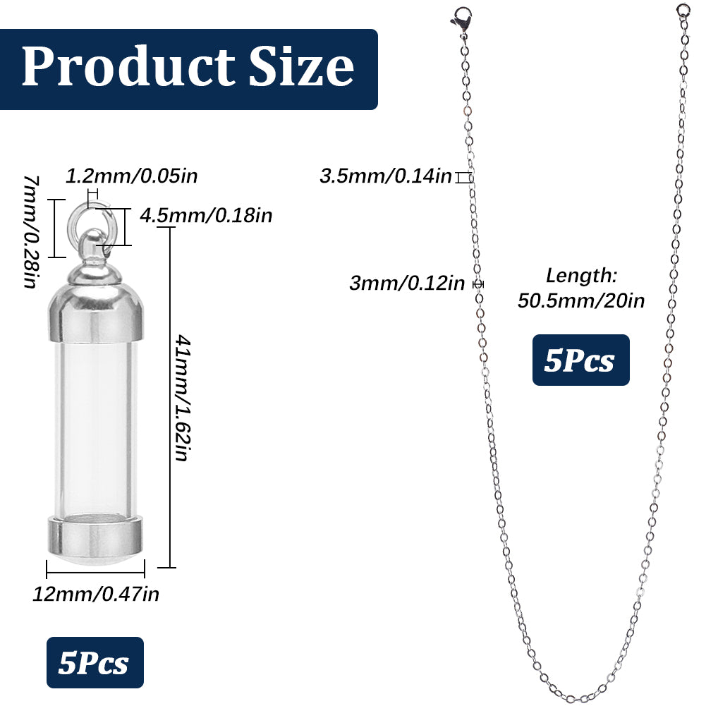 DIY Openable Wish Bottle Necklace Making Kit, Including Glass Pendants, Brass Cable Chains Necklaces, Platinum, 10Pcs/box
