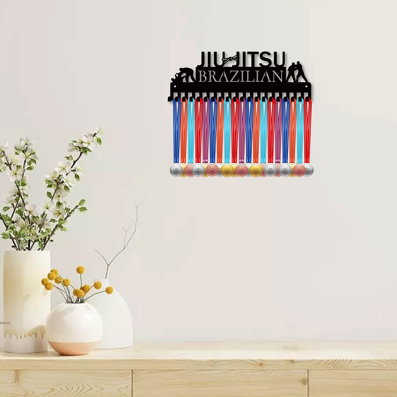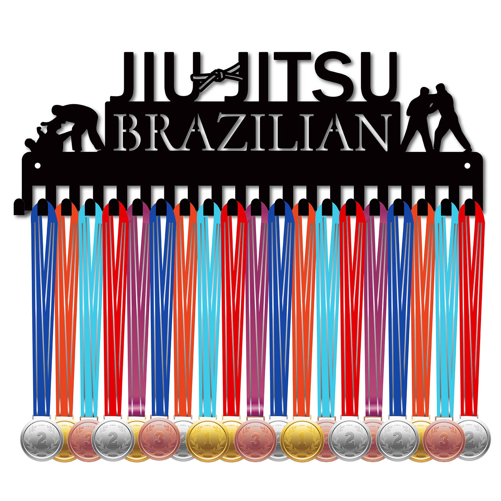 Iron Medal Holder Frame, Medals Display Hanger Rack, 20 Hooks, with Screws, Jiu-Jitsu Brazilian, Sports