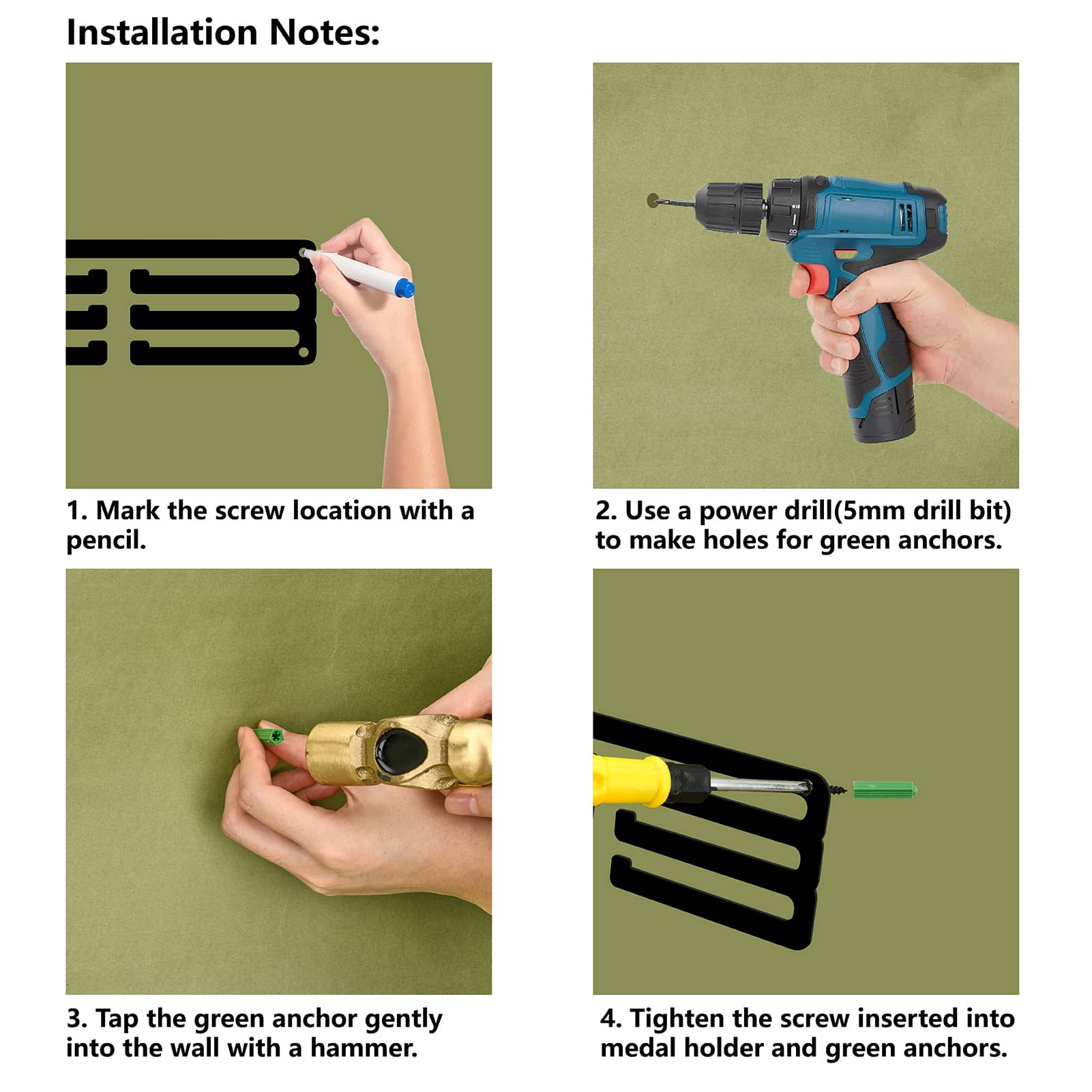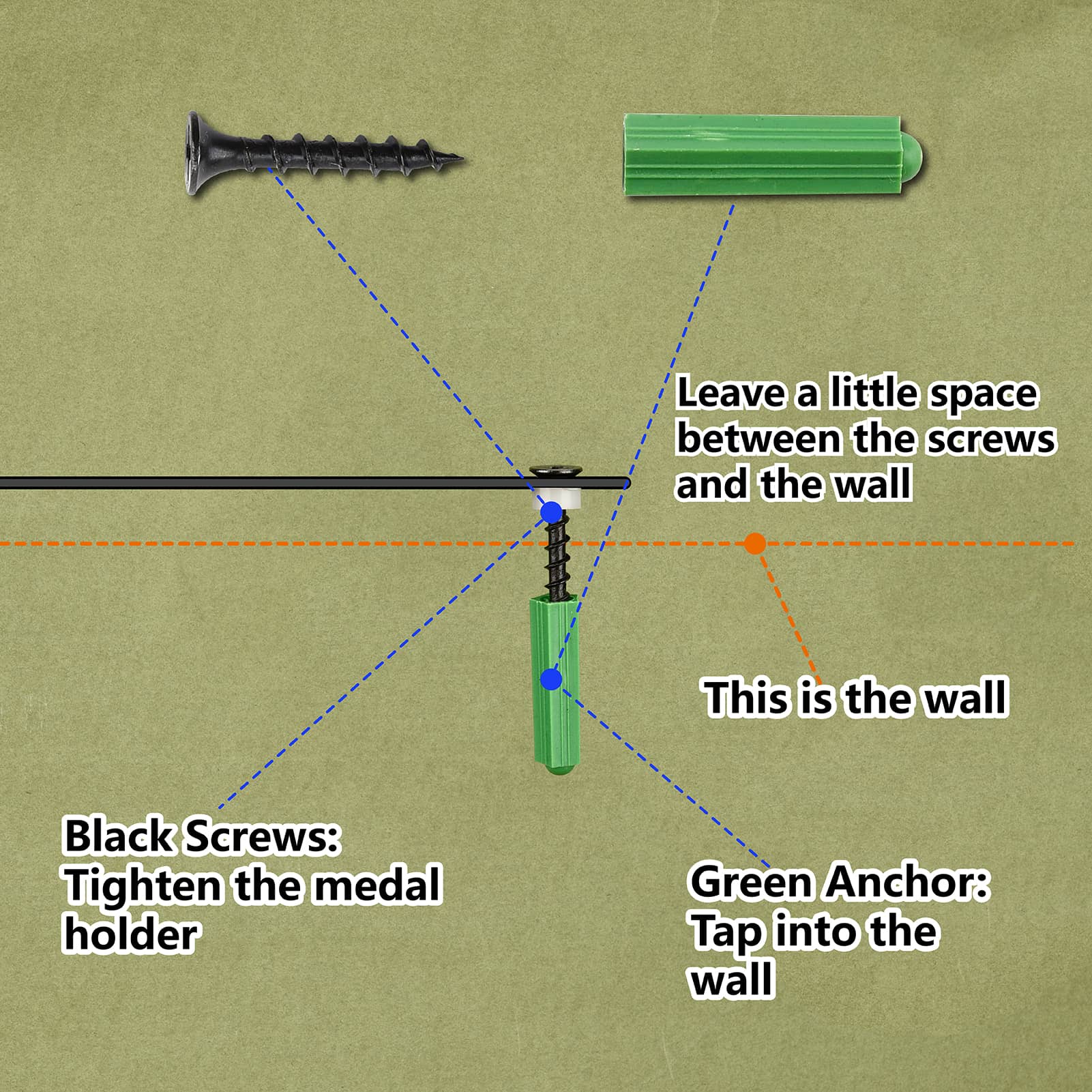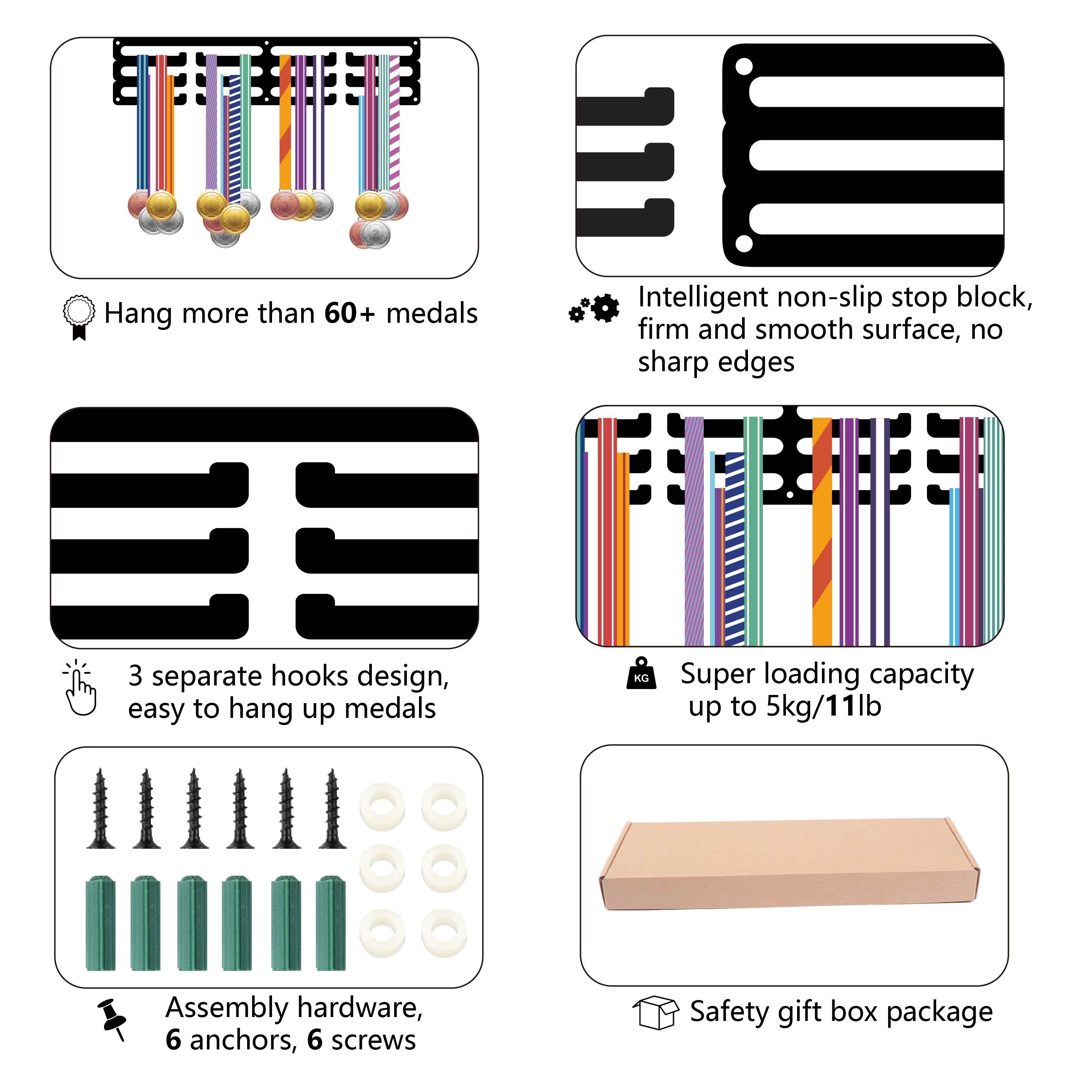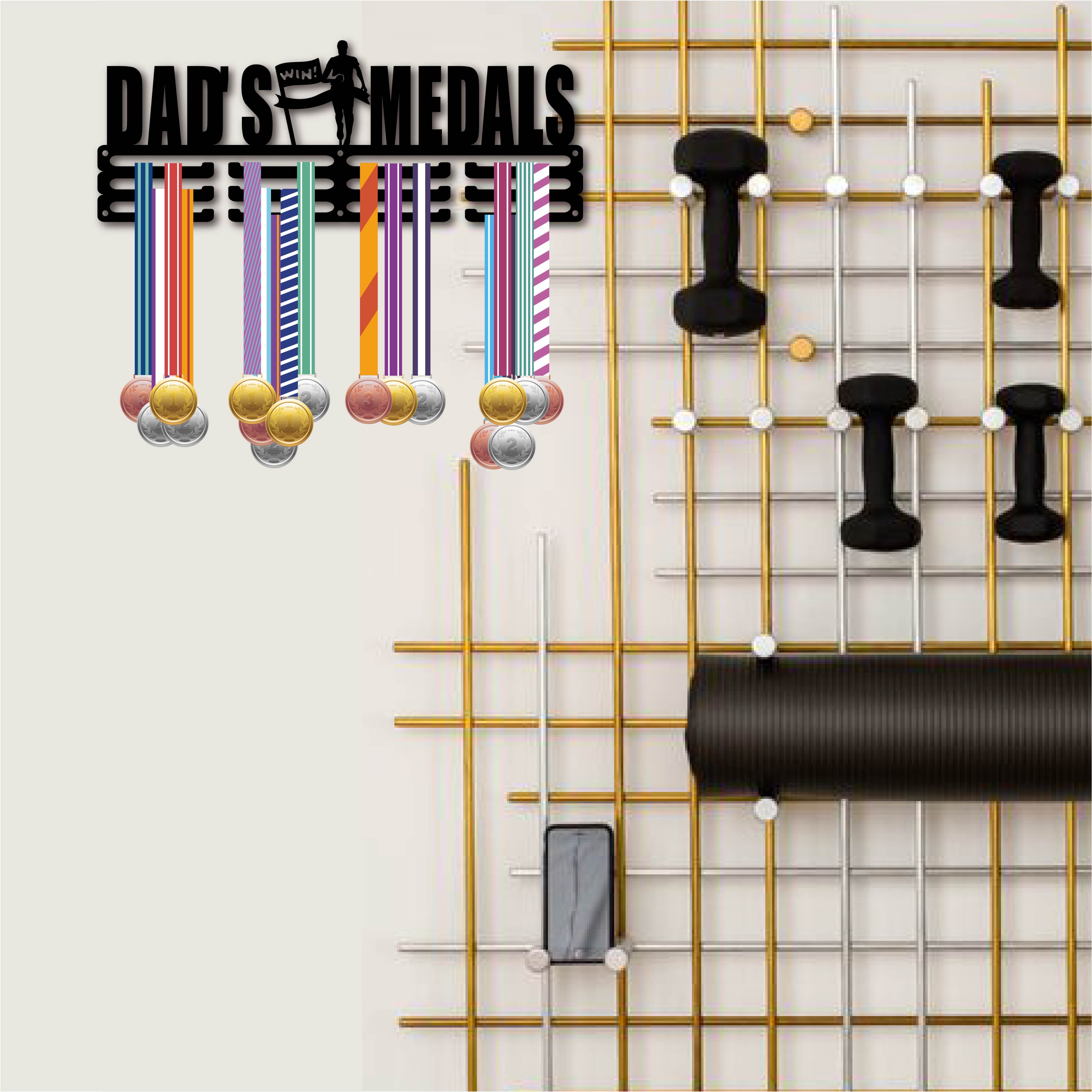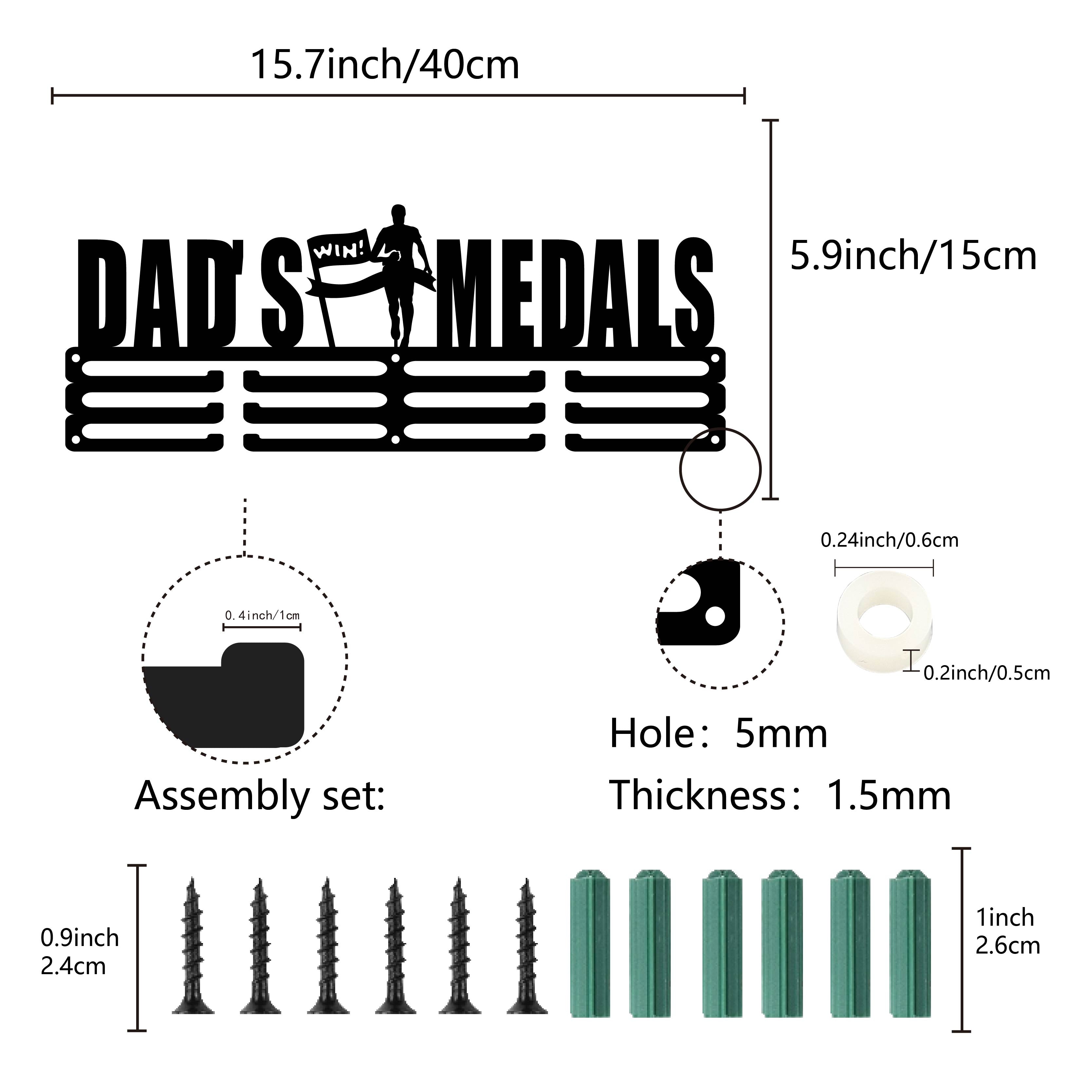 Fashion Iron Medal Hanger Holder Display Wall Rack, 3-Line, with Screws, Black, Word Dad's Medals, Human