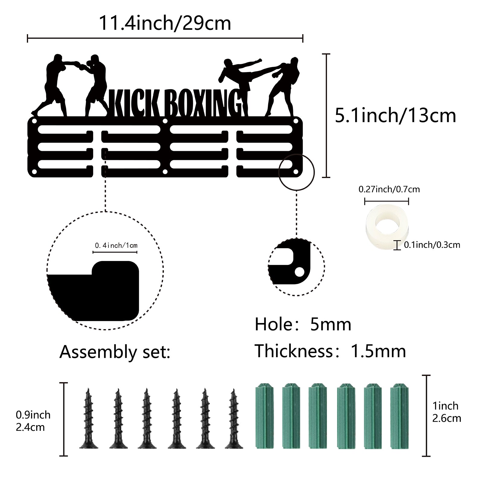 Sports Theme Iron Medal Hanger Holder Display Wall Rack, 3-Line, with Screws, Kick Boxing, Word