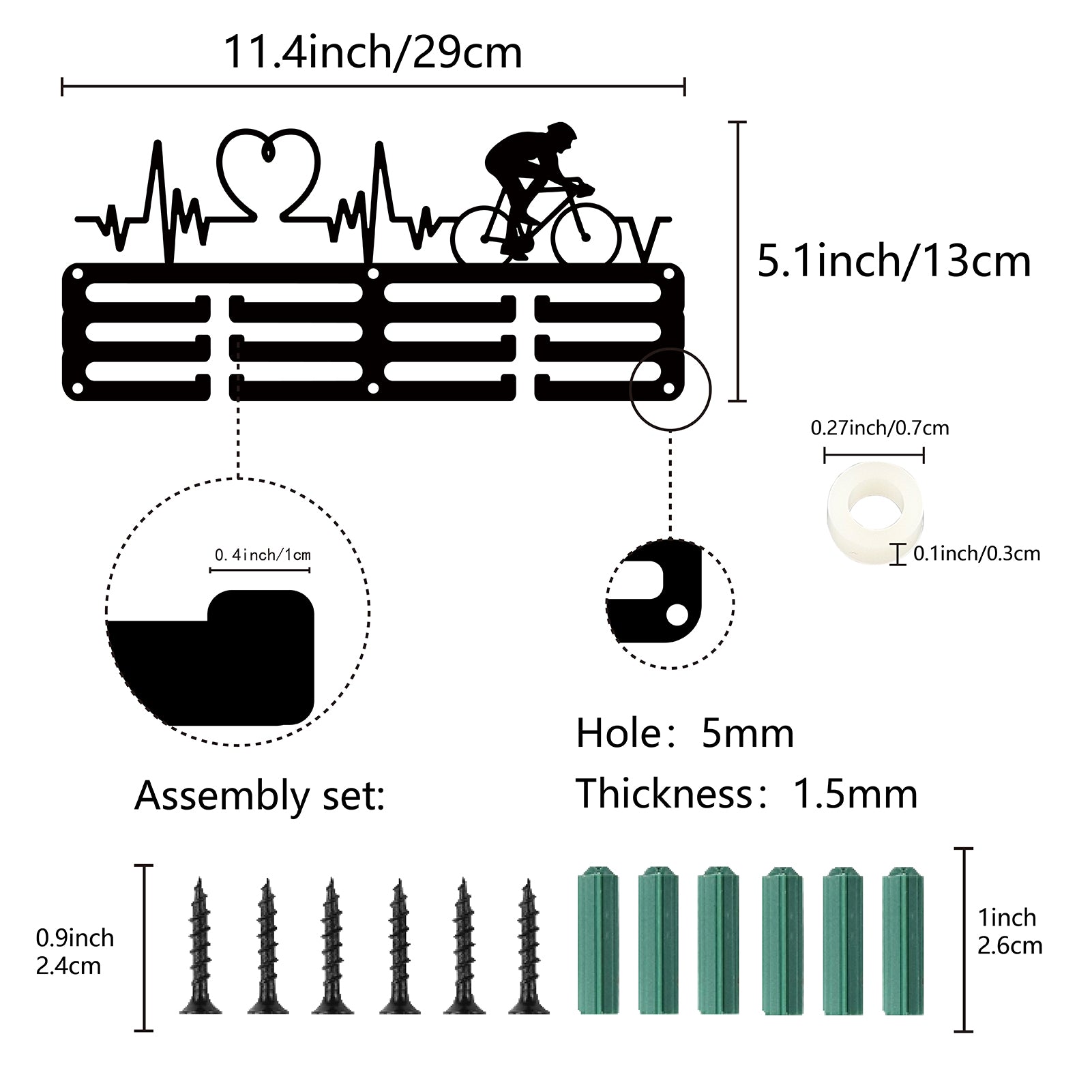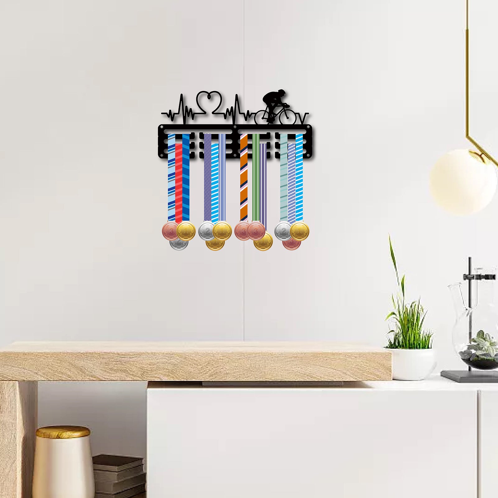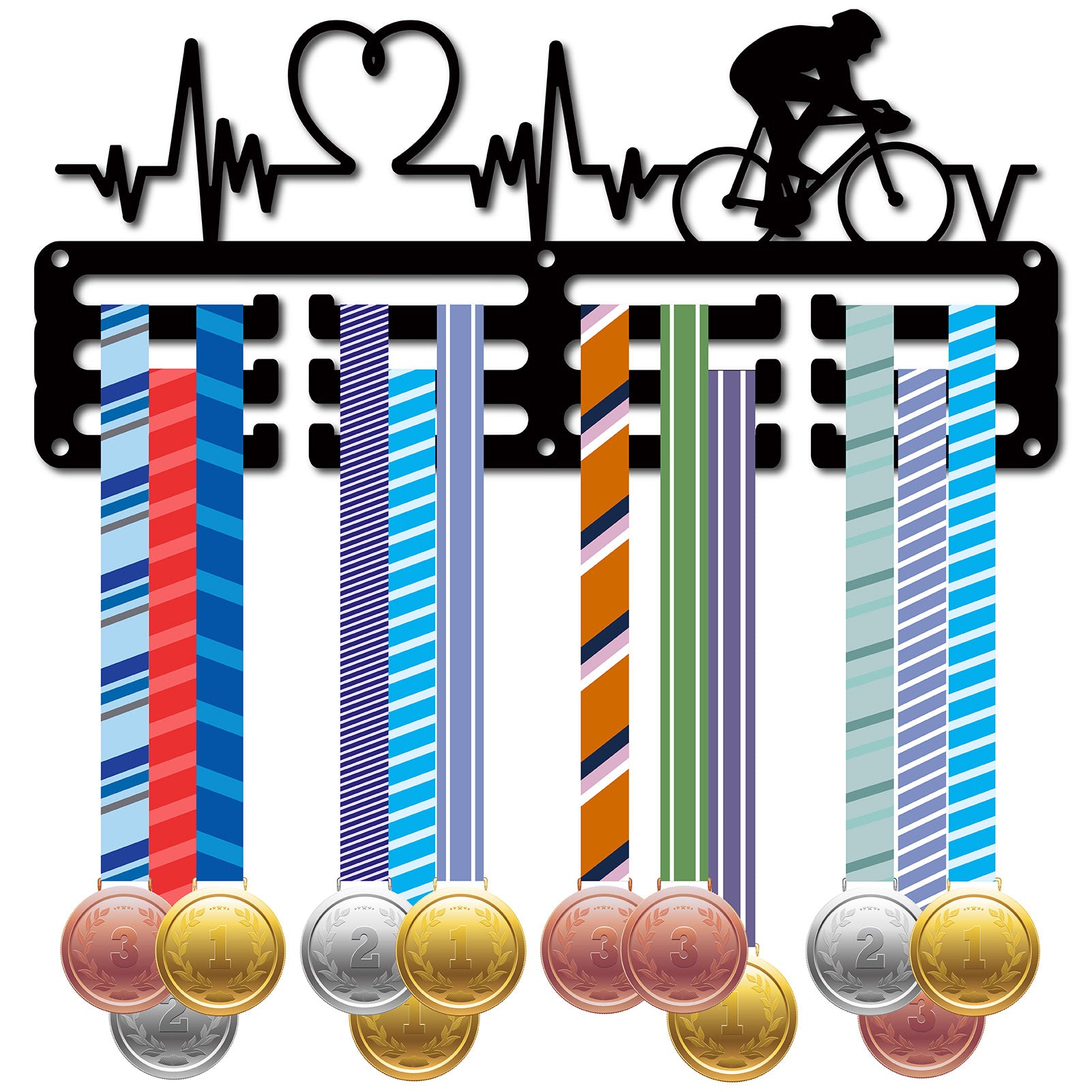 Sports Theme Iron Medal Hanger Holder Display Wall Rack, 3-Line, with Screws, Heart
