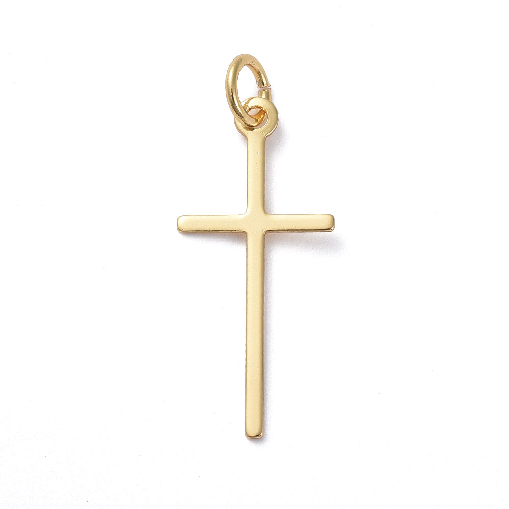 Brass Pendants, Long-Lasting Plated, Cross, Real 18K Gold Plated, 23x10.5x0.6mm, Hole: 3.2mm, 10pc/Set