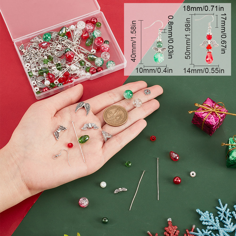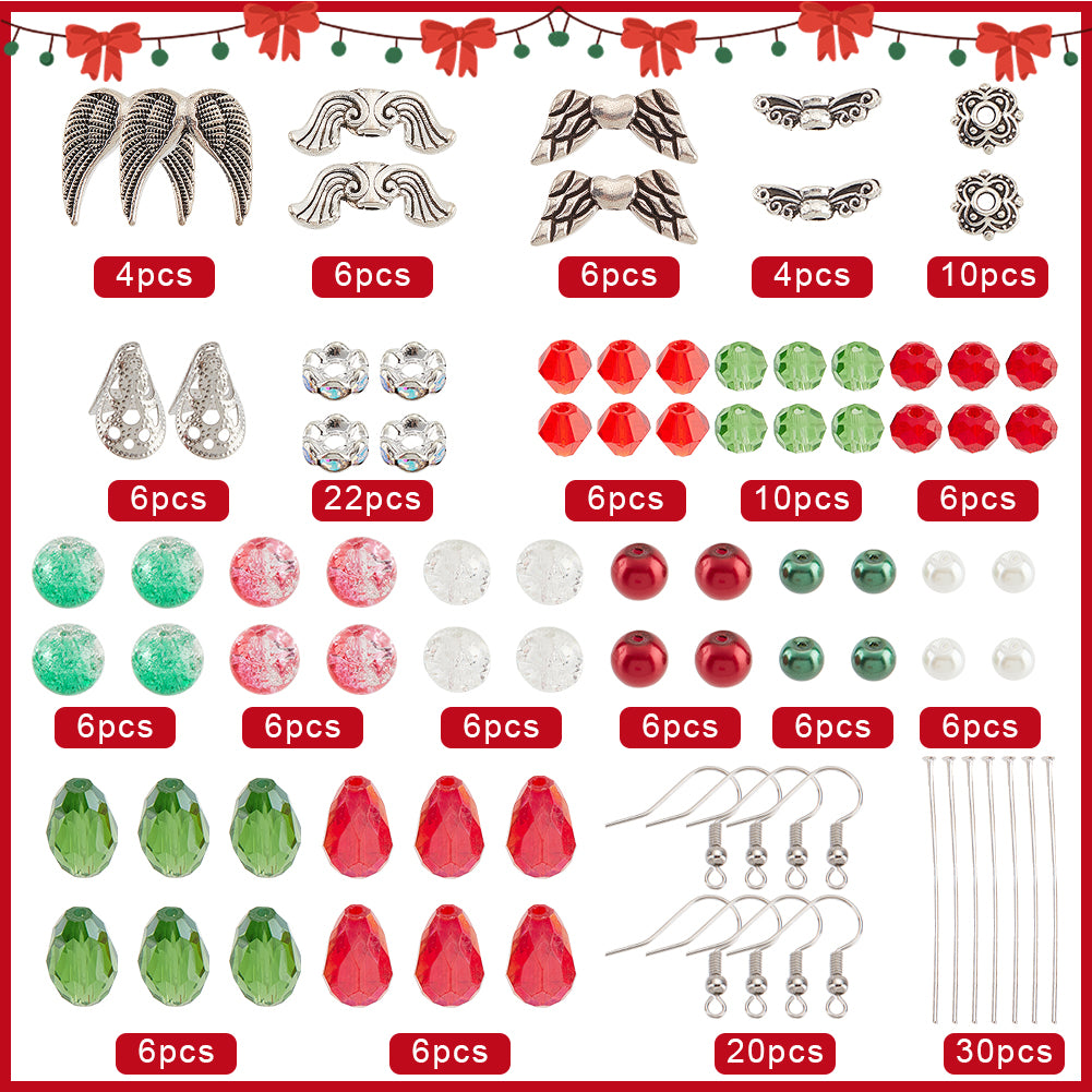 DIY Christmas Fairy Earring Making Kit, Including Glass Teardrop & Alloy Wing Beads, Brass Earring Hooks, Mixed Color, 178Pcs/box
