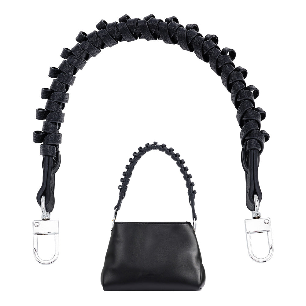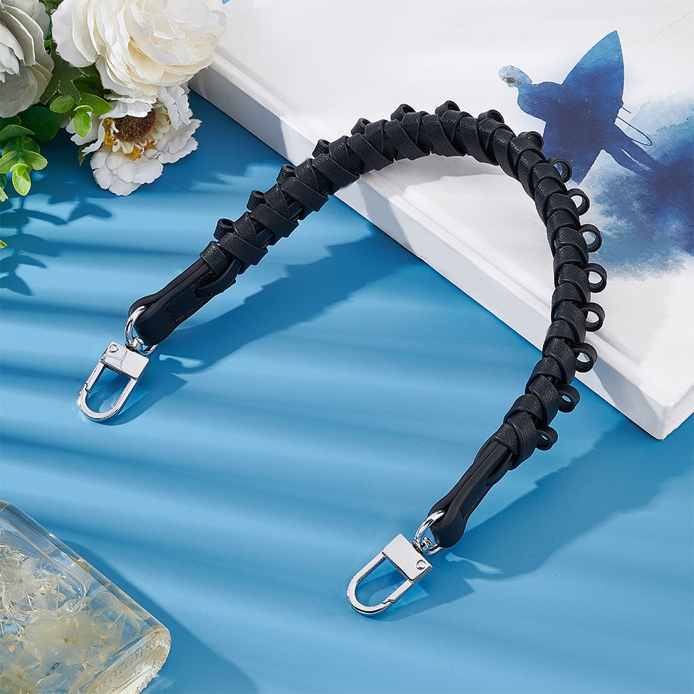 Imitation Leather Braided Bag Handles, with Platinum Tone Alloy Swivel Clasp, Black, 43.5x2.3x1.9cm