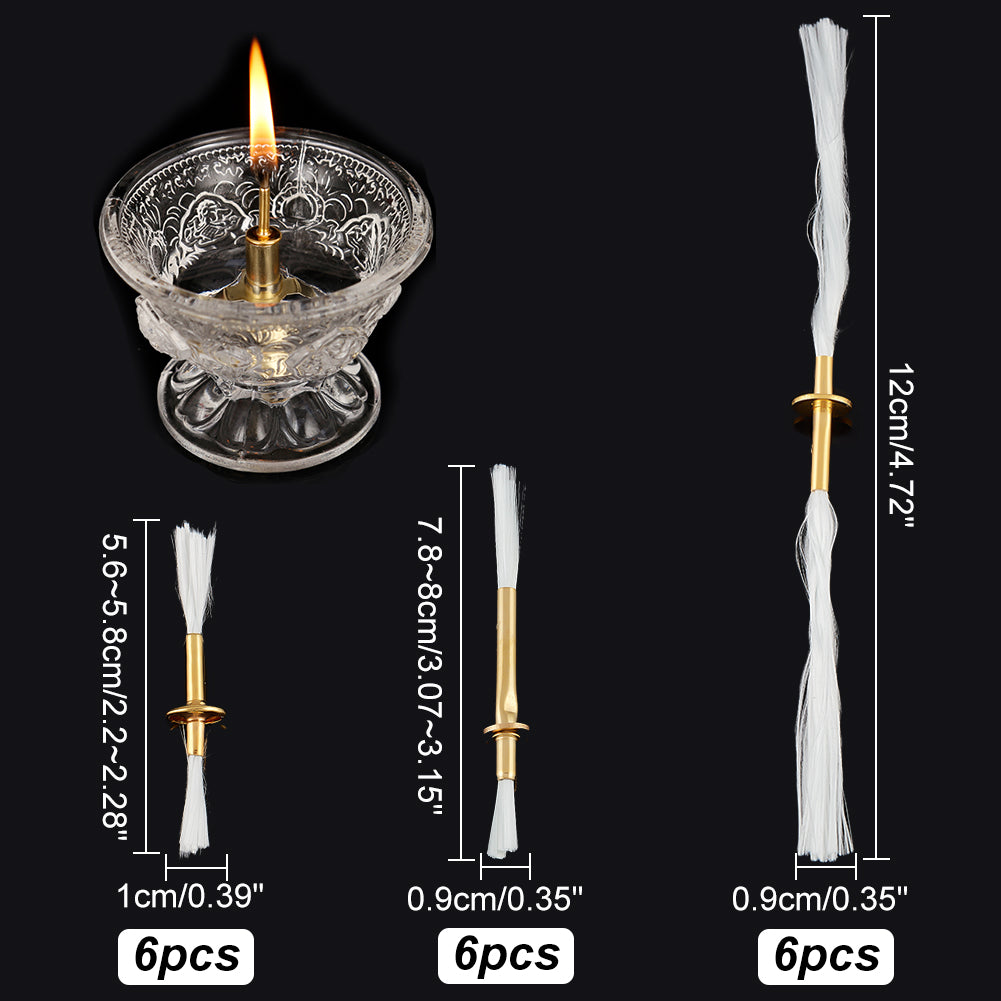 18Pcs 3 Style Replacement Fiberglass Torch Wicks, with Alloy & Brass Tube Holder, for Oil Lamp Making, Golden, 5.6~12x0.9~1cm, 6pcs/style