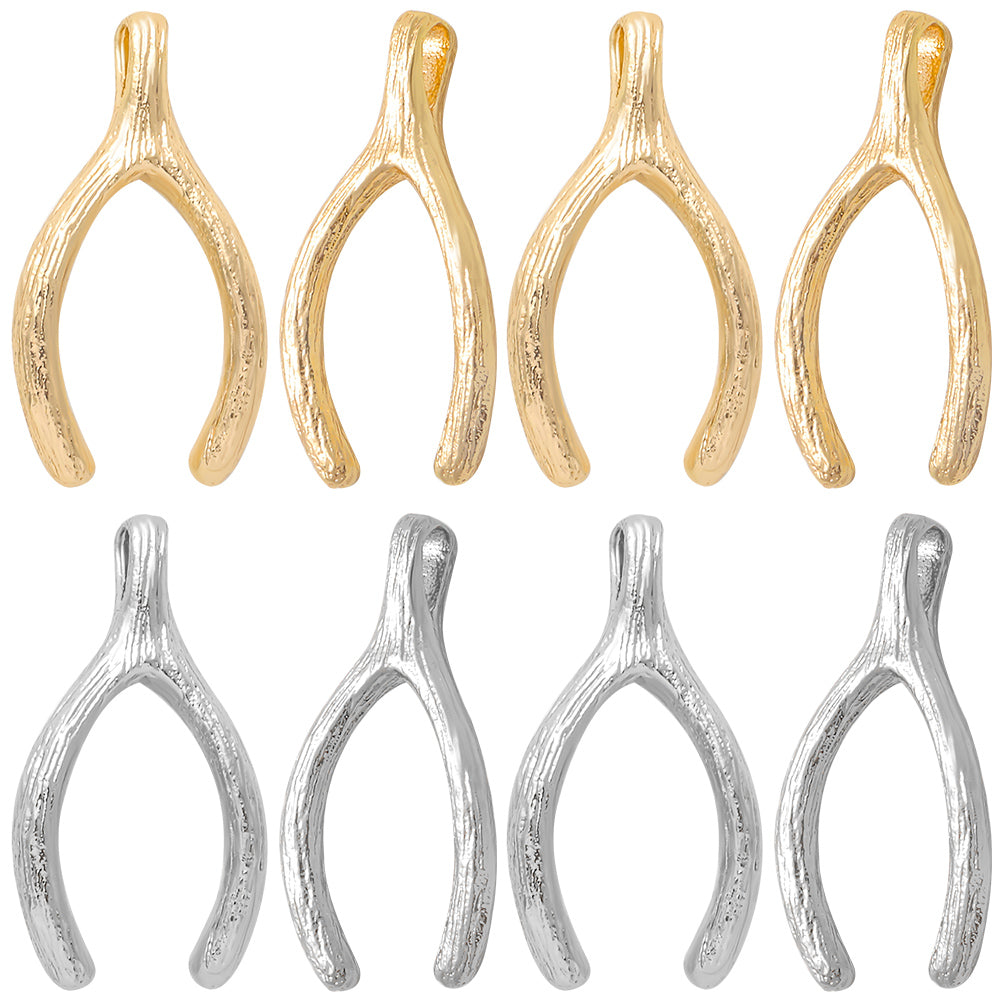 20Pcs 2 Colors Brass Pendants, Wish Bone Lucky Charm, Real Gold Plated & Real Platinum Plated