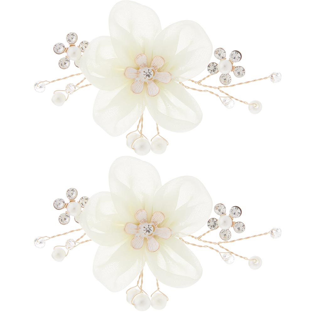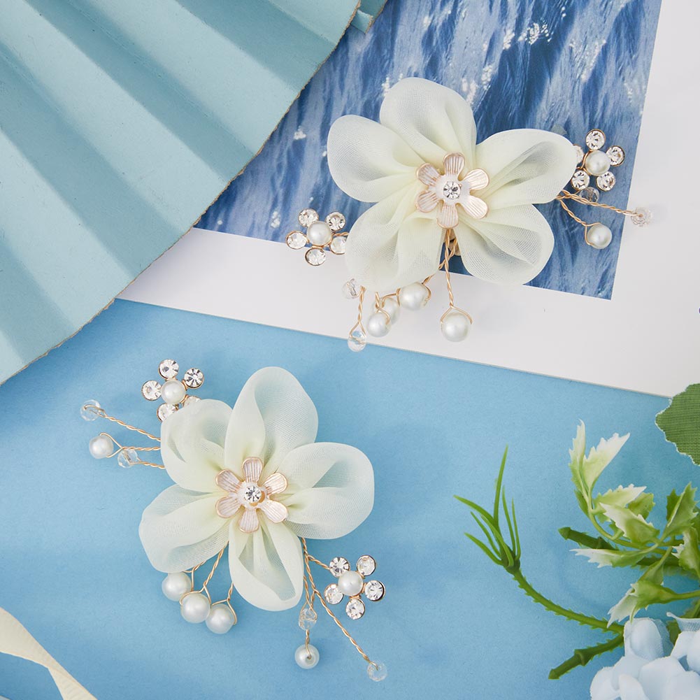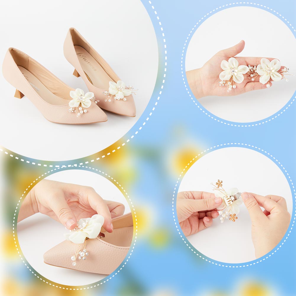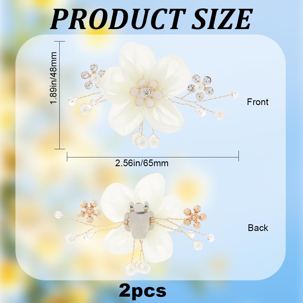 Detachable Cloth Flower Shoe Decoration, Iron Shoe Buckle Clip with Crystal Rhinestone & Imitation Pearl, Light Yellow, 64~65x48x14.5~15mm, 2pcs/set