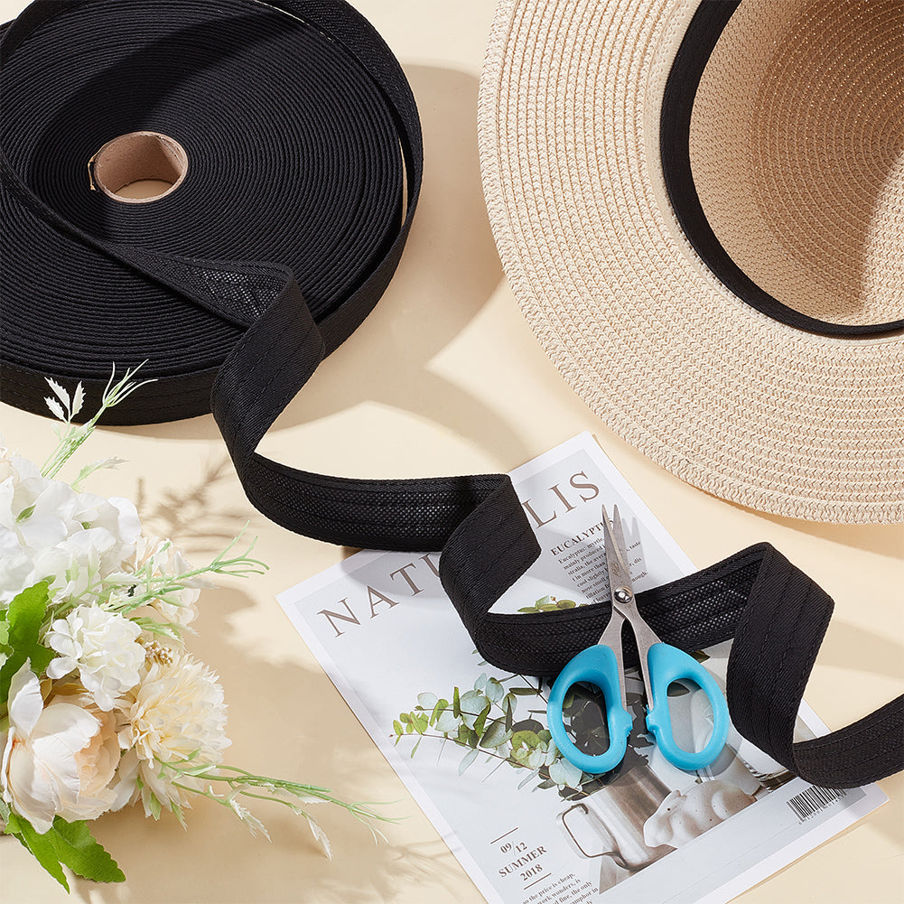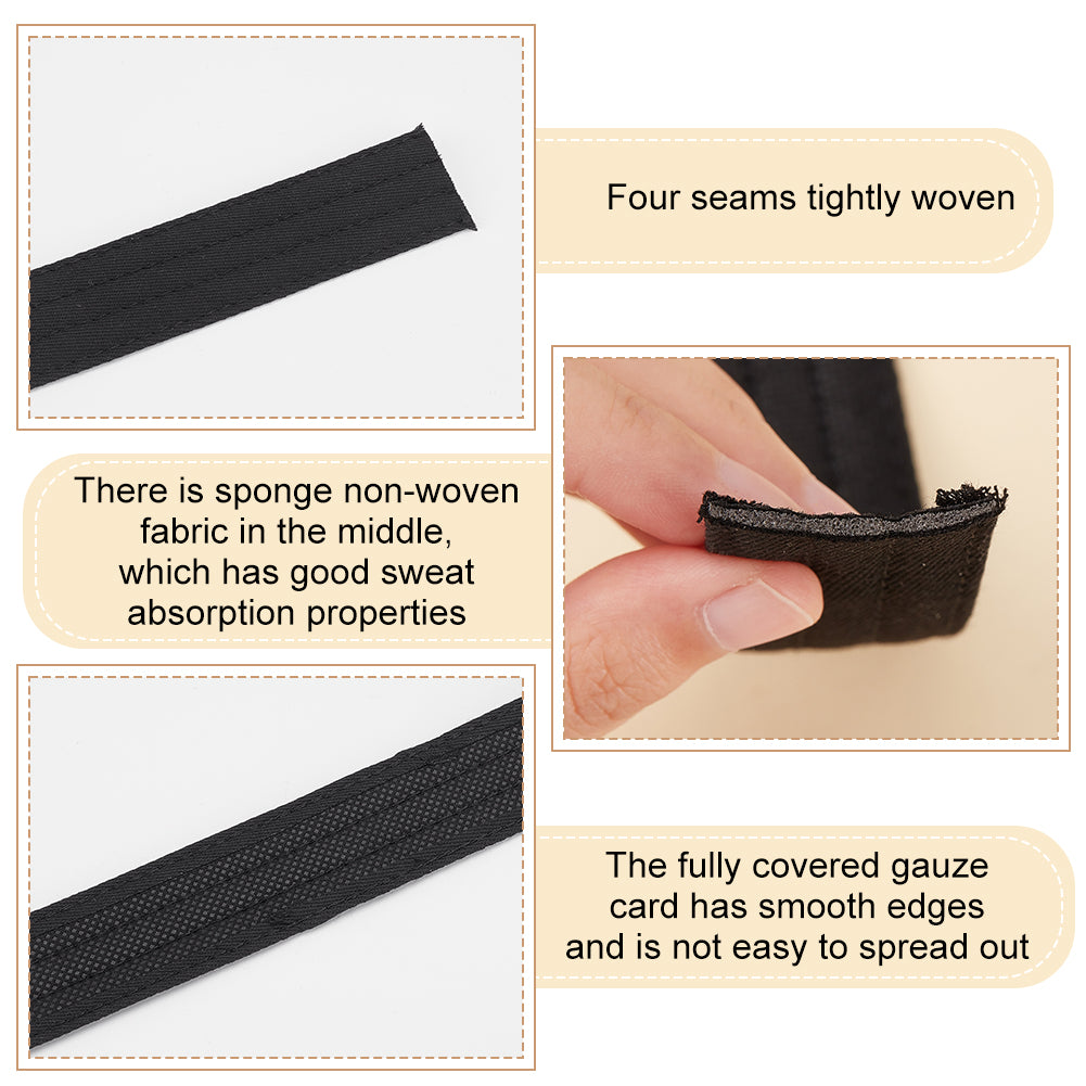 15M Polycotton Hat Sweatbands, Hat Liner Tape, Sewing Craft Accessories, Black, 31x2.2mm