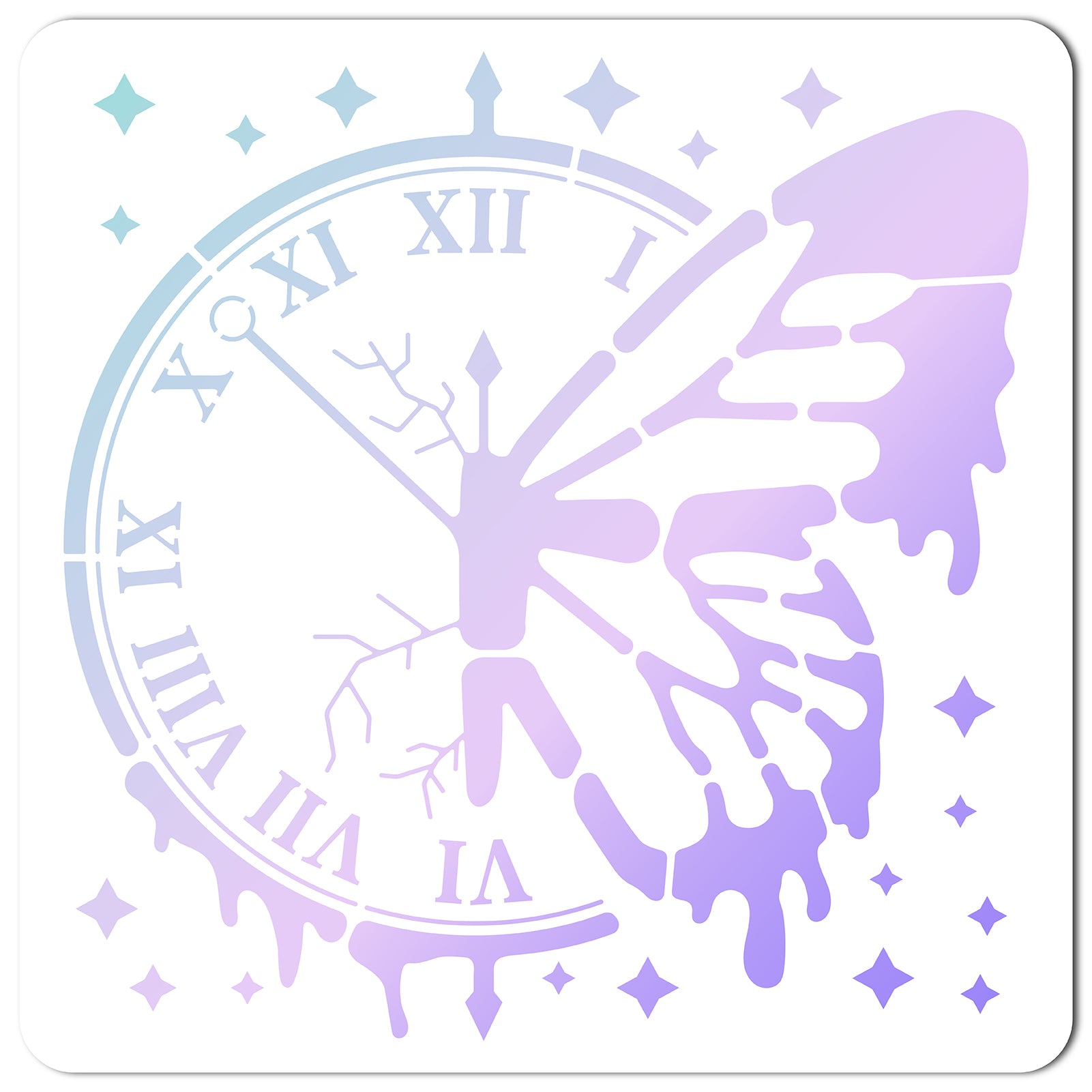 Globleland PET Plastic Drawing Painting Stencils Templates, Square, White, Butterfly Pattern, 30x30cm