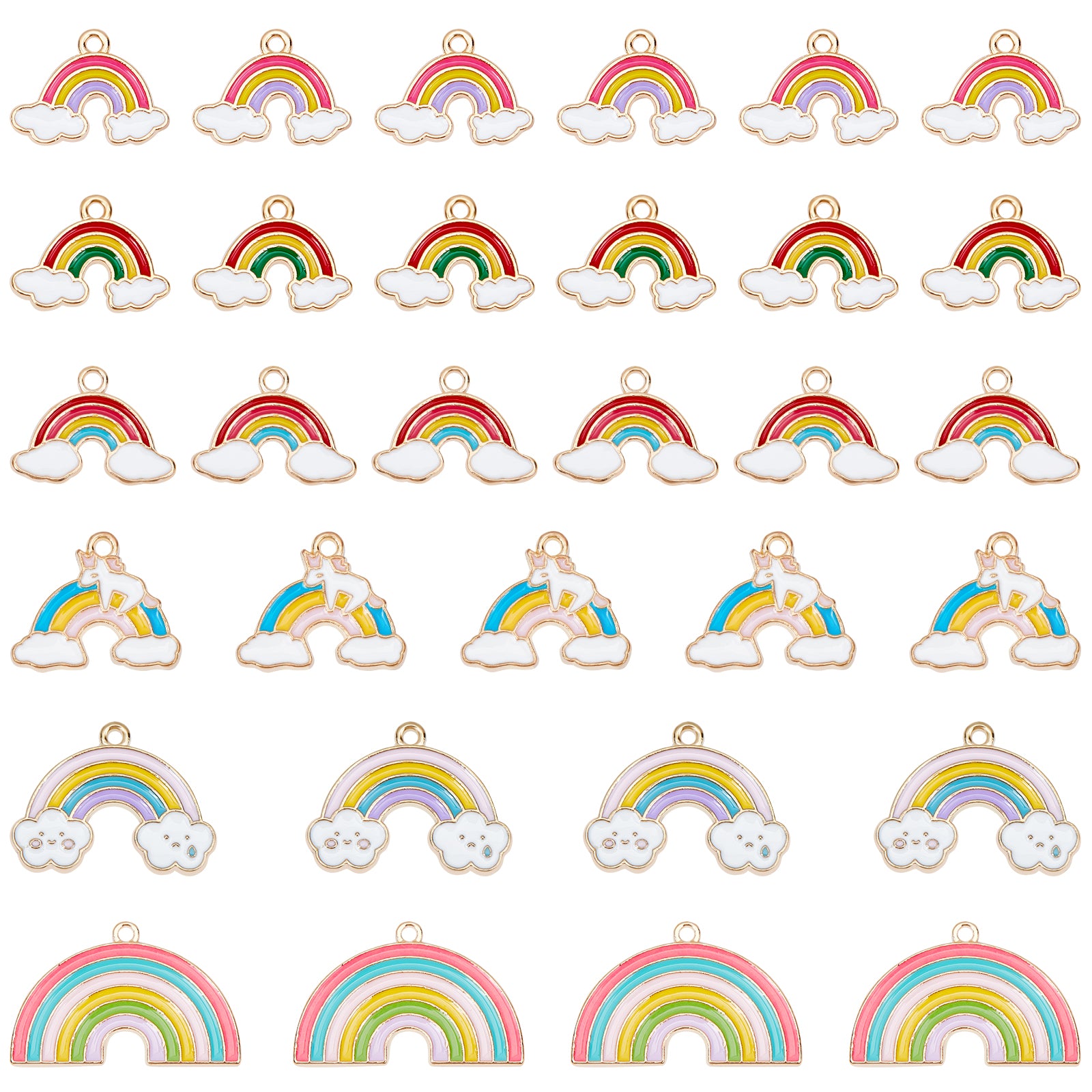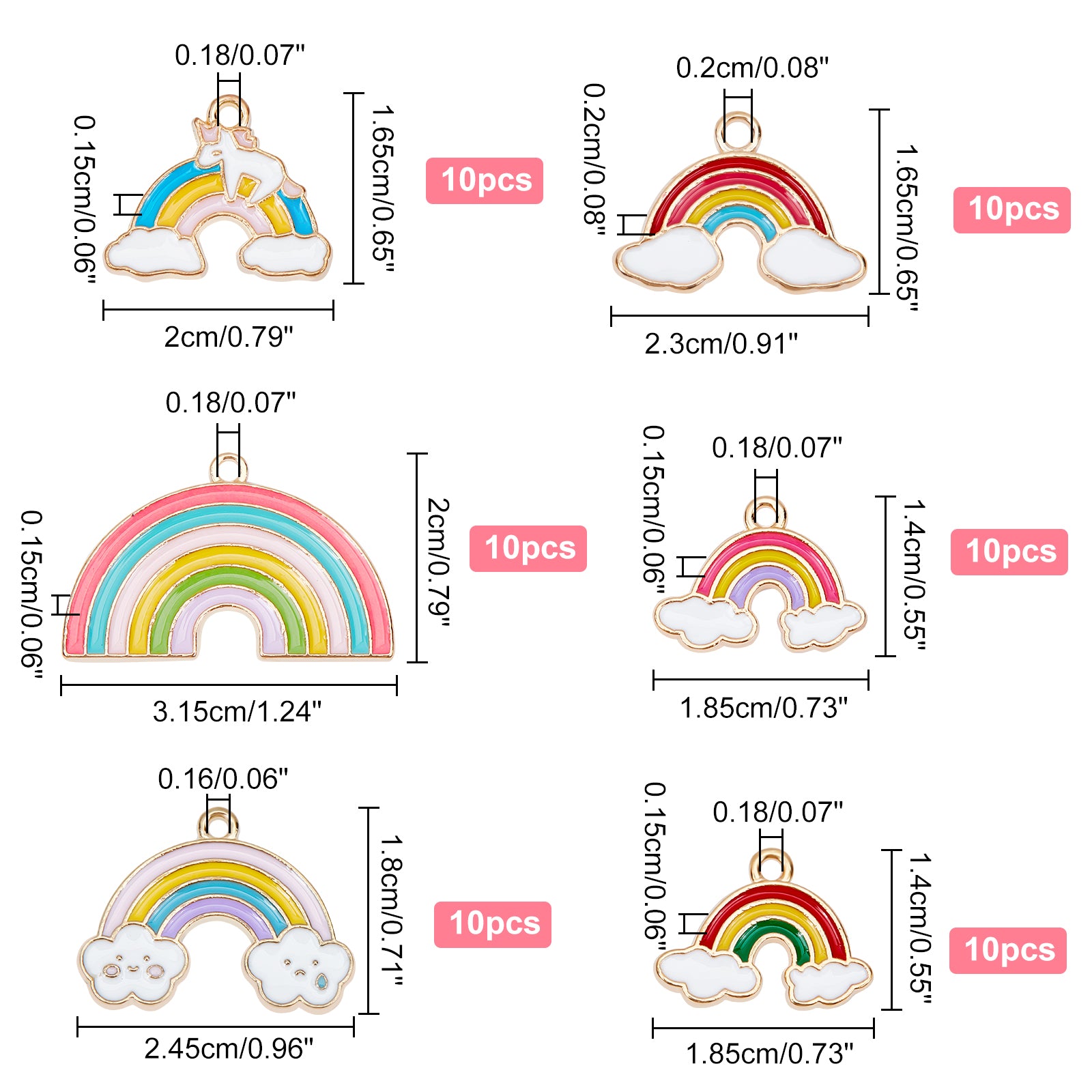 60Pcs 6 Style Alloy Enamel Pendants, Rainbow, Mixed Color, 10pcs/style