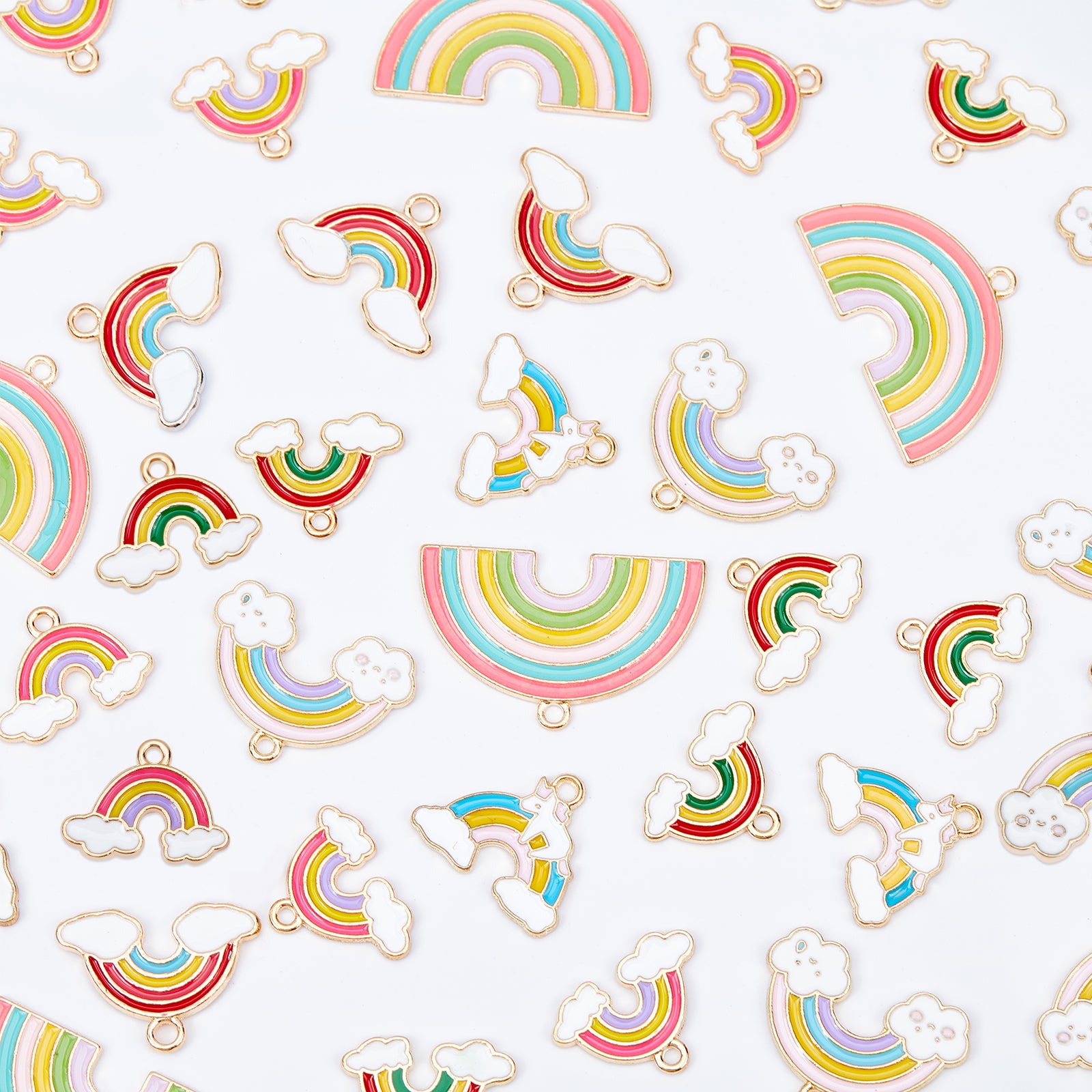 60Pcs 6 Style Alloy Enamel Pendants, Rainbow, Mixed Color