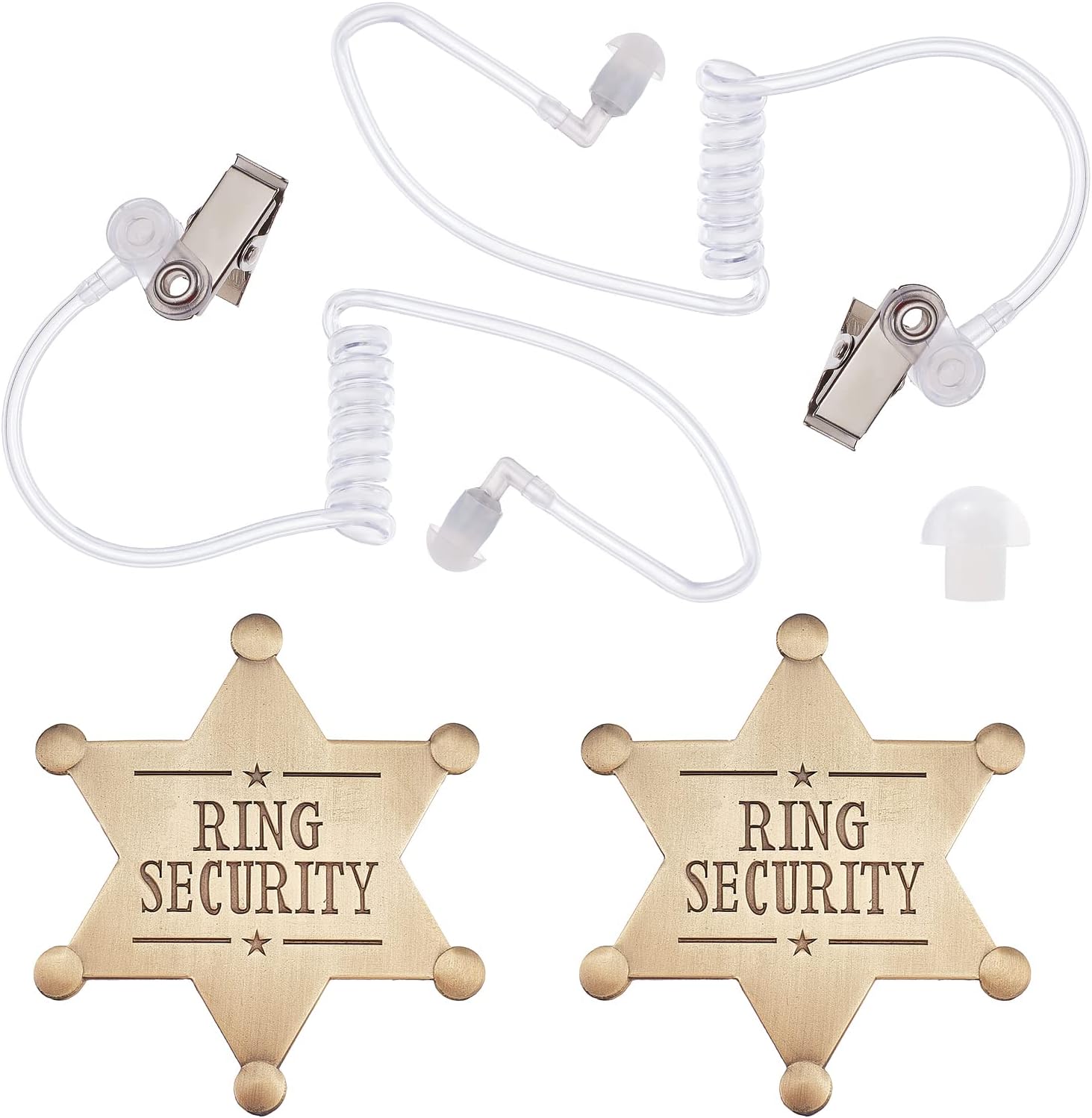 Ring Security Word Badge, Star Alloy Brooch Pin for Backpack Clothes, with Plastic Air Duct Accessories for Intercom Earphone, Antique Bronze