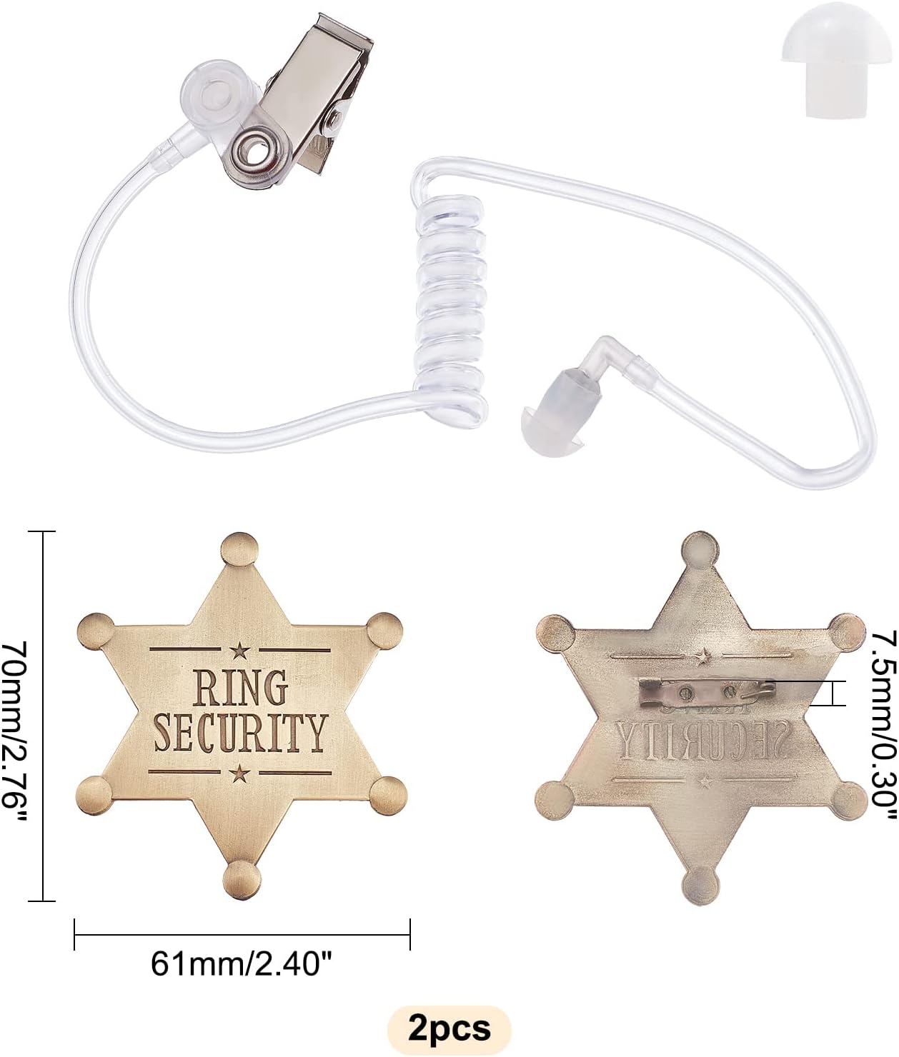 Ring Security Word Badge, Star Alloy Brooch Pin for Backpack Clothes, with Plastic Air Duct Accessories for Intercom Earphone, Antique Bronze, 70x61x7.5mm, 2pcs