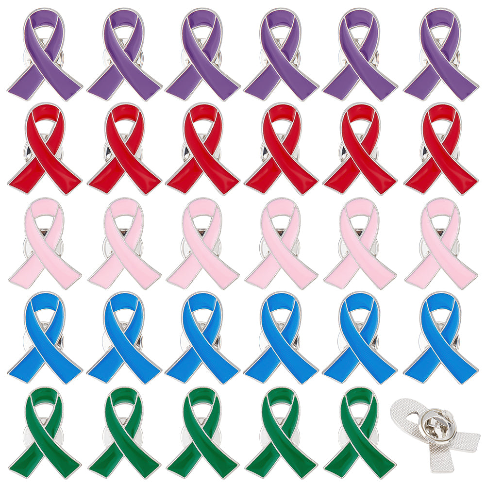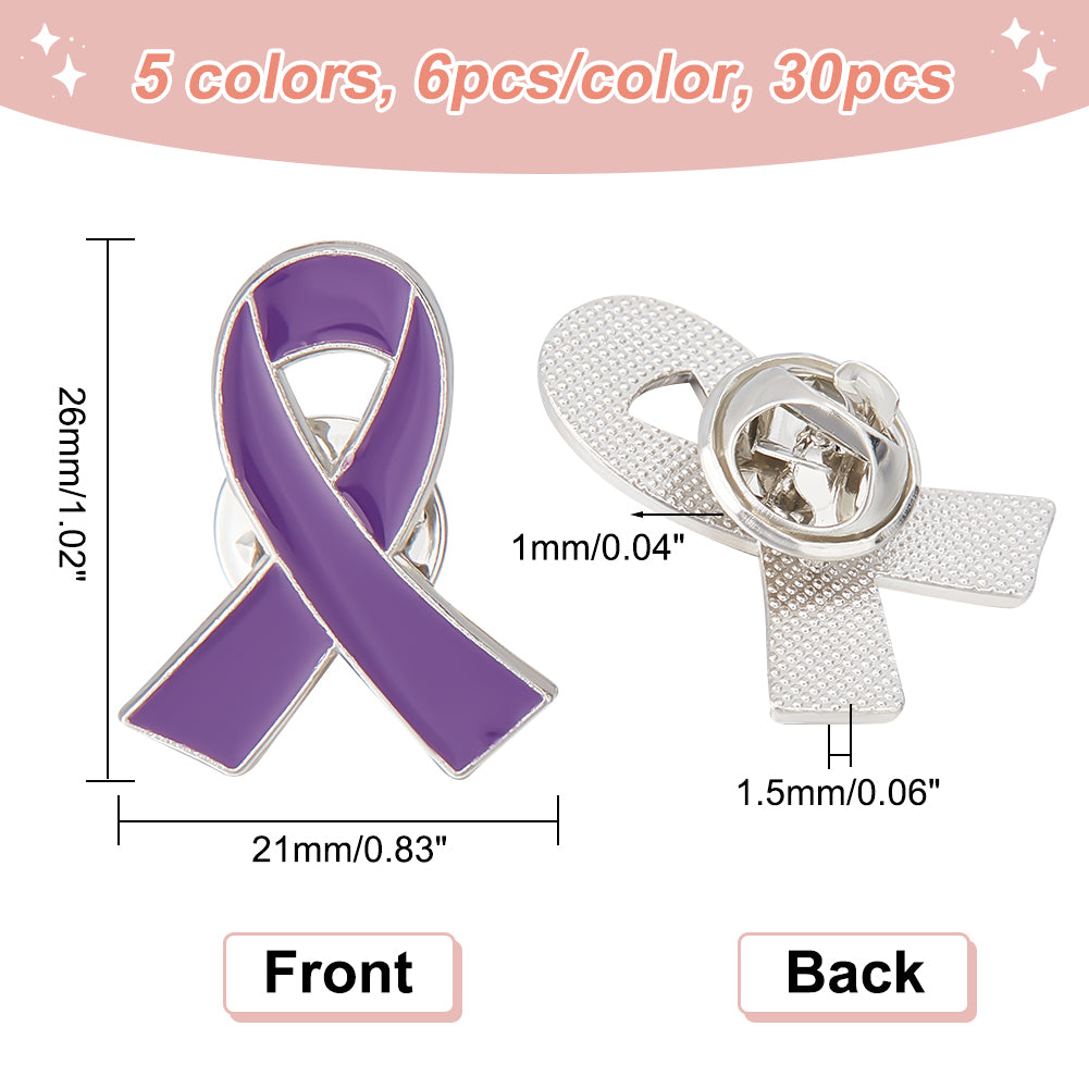 30Pcs 5 Colors Awareness Ribbon Enamel Pin, Platinum Alloy Brooch for Backpacks Clothes Jackets Hats, Mixed Color