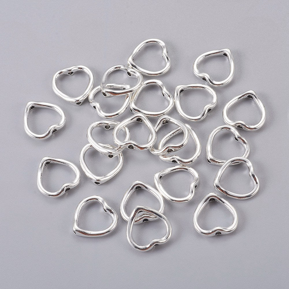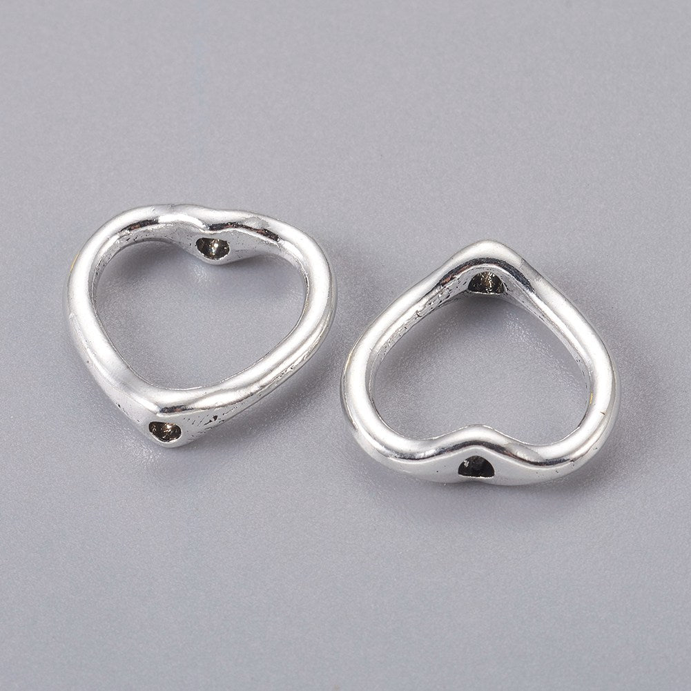Tibetan Style Alloy Bead Frames, Lead Free and Cadmium Free, Nickel Free, Heart, Antique Silver Color, about 13.5x14x2mm, hole: 1.5mm, 50pc/Set