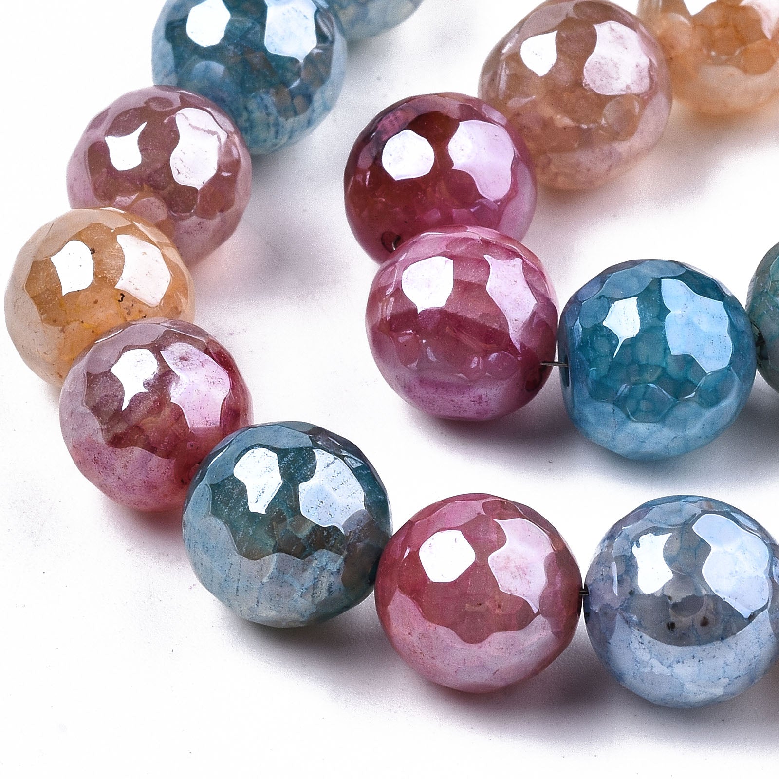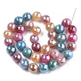 Electroplate Natural Agate Beads Strands, Dyed, Faceted, Pearl Luster Plated, Round, Colorful, 10.5mm, Hole: 1.2mm, about 36~37pcs/strand, 14.37 inch~14.57 inch(36.5cm~37cm), 3Strand/Set
