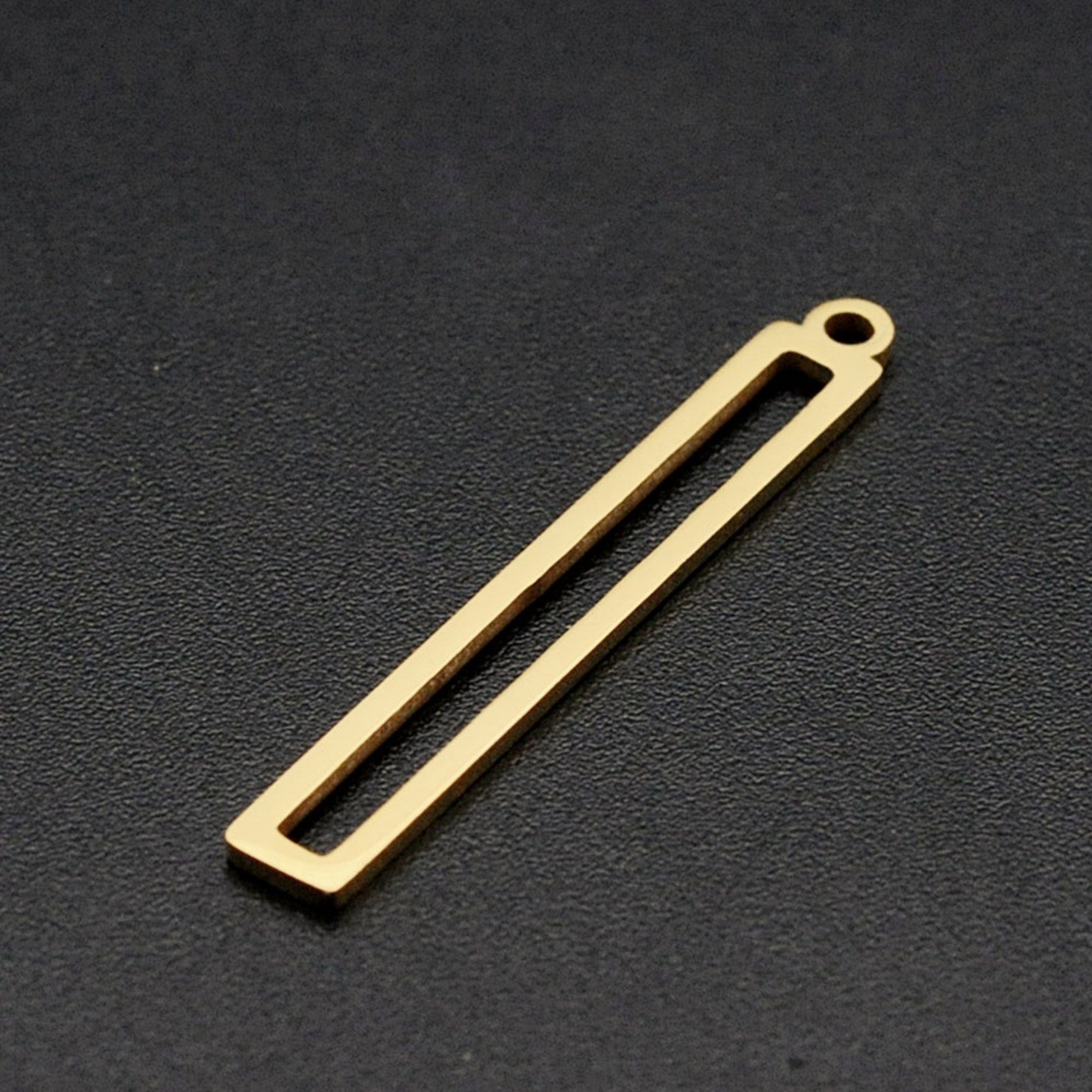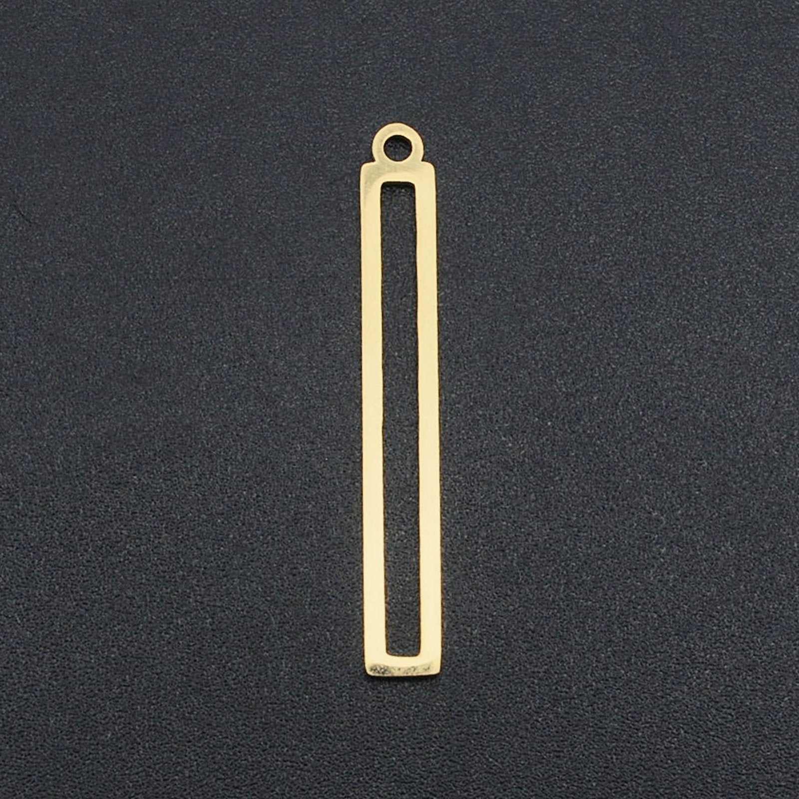 201 Stainless Steel Pendants, Laser Cut, Hollow, Rectangle/Bar, Real 18K Gold Plated, 32x4x1mm, Hole: 1.6mm, 5pc/Set