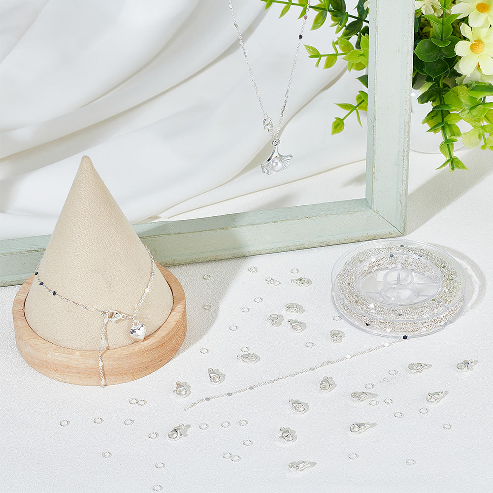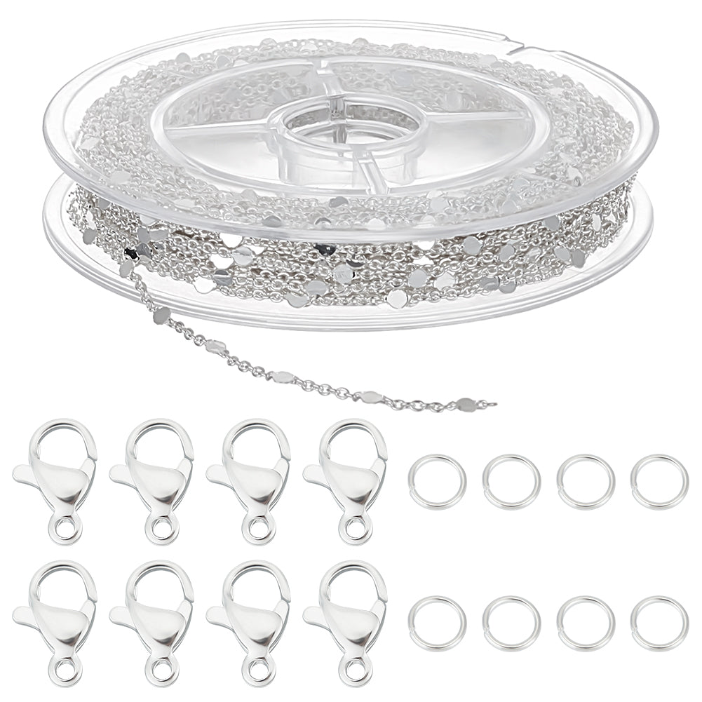 DIY Chain Bracelet Necklace Making Kit, Including Brass Flat Round Link Chains, 304 Stainless Steel Clasps & Jump Rings, Silver