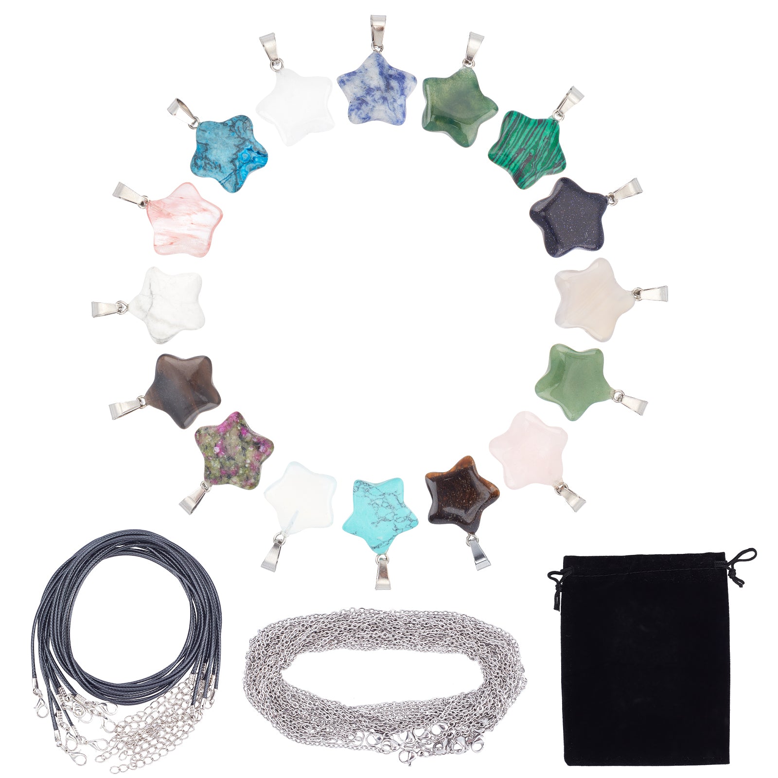 DIY Star Pendant Necklaces Making Kits, Including Gemstone Pendants, Waxed Cotton Cord Necklace Makings and 304 Stainless Steel Women Chain Necklaces, Stainless Steel Color, Necklace: 17.7 inch/18.7 inch, 20pcs/bag