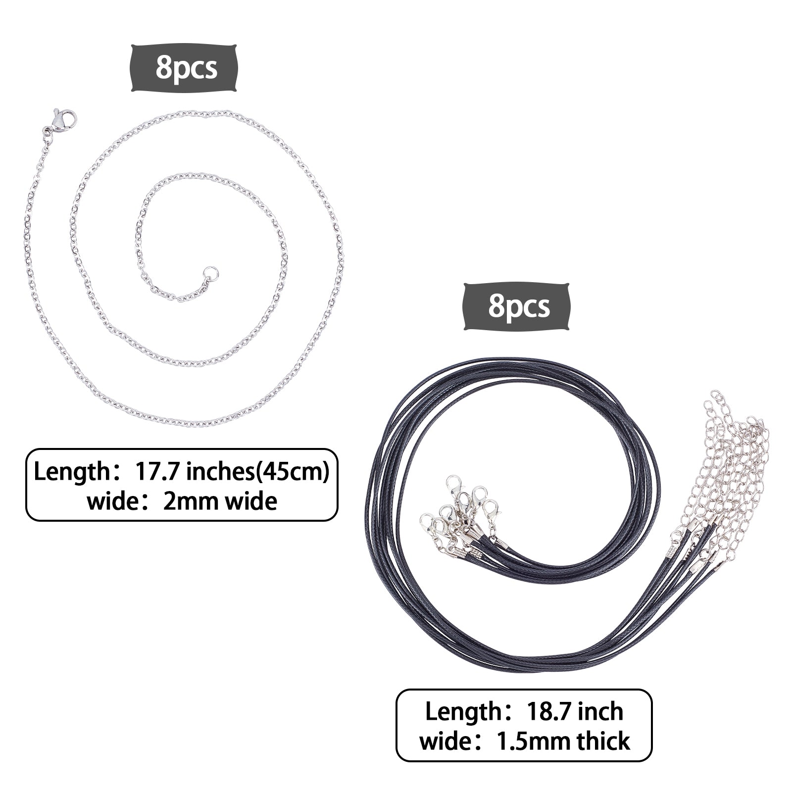 Waxed Cotton Cord Necklace Making: 18.7 inch long, 1.5mm thick, 8pcs;